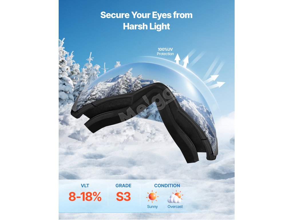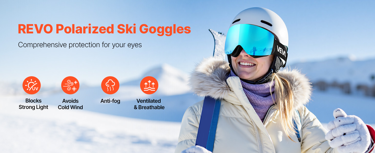 Tieto lyžiarske okuliare Revo blokujú ostré slnečné svetlo a znižujú oslnenie na snehu, čím pomáhajú predchádzať snežnej slepote. Chránia vás pred studeným vetrom, udržiavajú váš výhľad bez zahmlievania a udržiavajú čerstvé prúdenie vzduchu, takže si môžete s istotou užiť každú jazdu.