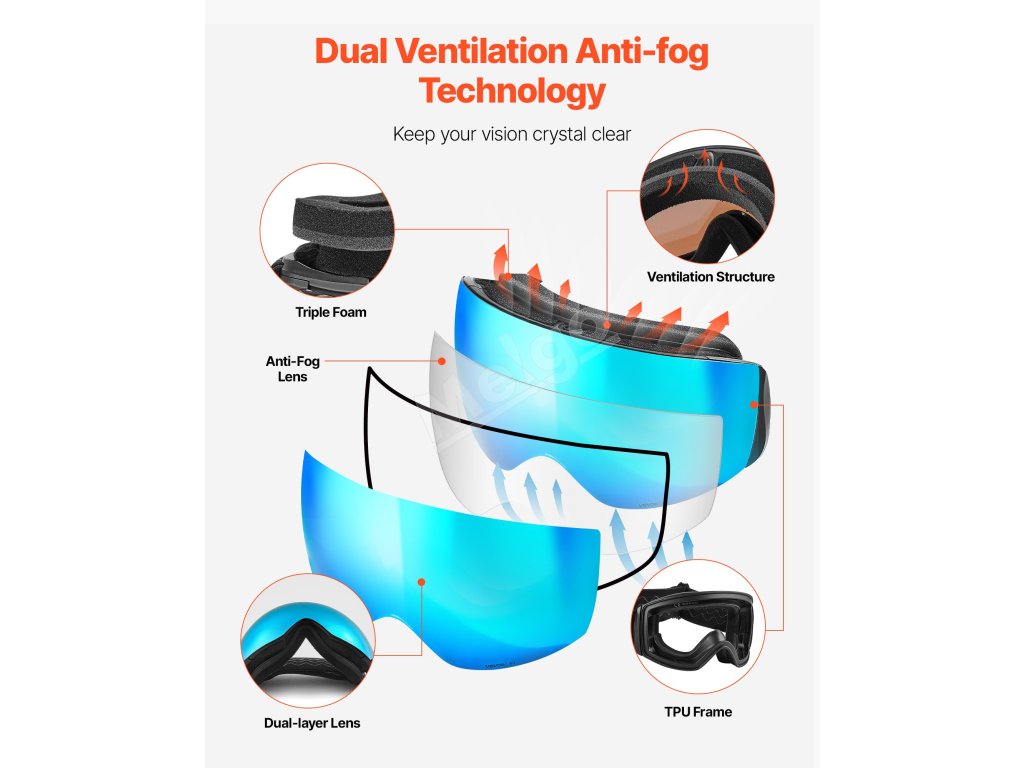 Priliehavý strih obopne tvar vašej tváre, takže lyžiarske okuliare zostanú na svojom mieste aj počas intenzívnej aktivity. Jasné videnie bez zahmlievania vás udrží sústredených, či už lyžujete, jazdíte na snowboarde alebo na bicykli.