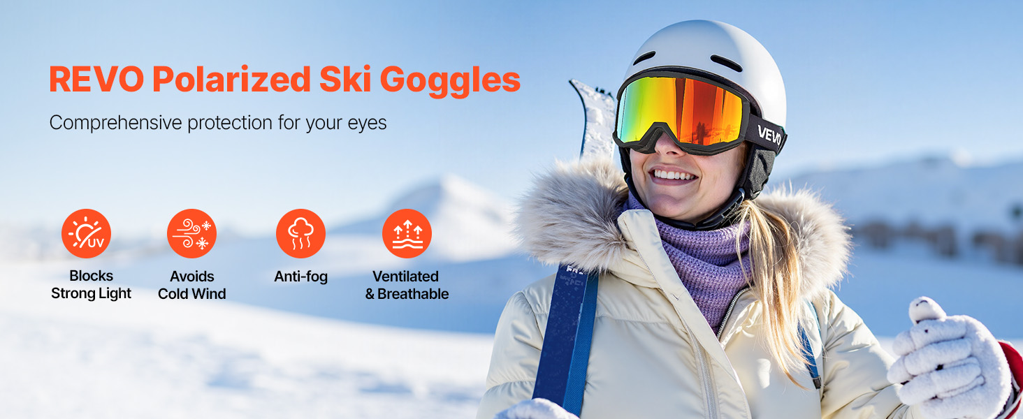 Tieto lyžiarske okuliare Revo blokujú ostré slnečné svetlo a znižujú oslnenie na snehu, čím pomáhajú predchádzať snežnej slepote. Chránia vás pred studeným vetrom, udržiavajú váš výhľad bez zahmlievania a udržiavajú čerstvé prúdenie vzduchu, takže si môžete s istotou užiť každú jazdu.