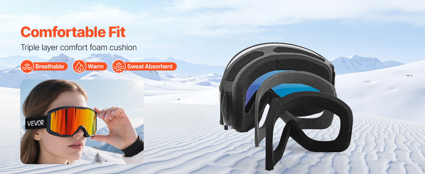 Mäkká trojvrstvová pena snehových okuliarov sa jemne prispôsobí vašej tvári, absorbuje nárazy a blokuje studený vzduch. Priedušná konštrukcia odvádzajúca vlhkosť vás udrží v teple, bez potu a v pohodlí počas celodenného lyžovania.