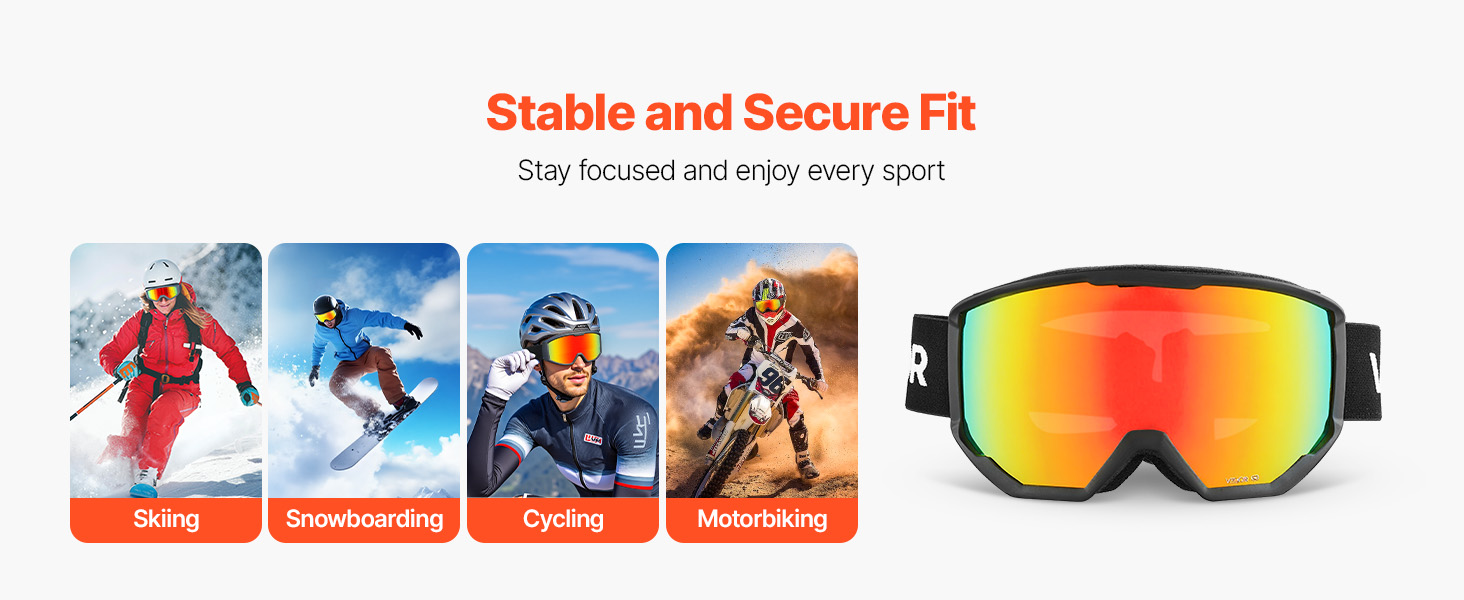 Priliehavý strih obopne tvar vašej tváre, takže lyžiarske okuliare zostanú na svojom mieste aj počas intenzívnej aktivity. Jasné videnie bez zahmlievania vás udrží sústredených, či už lyžujete, jazdíte na snowboarde alebo na bicykli.
