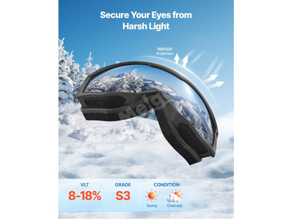 Pokročilý cylindrický zorník snežných okuliarov ponúka skutočné videnie bez skreslenia 1:1, čím obnovuje prirodzený pohľad na zjazdovky. Jemné zakrivenie znižuje deformáciu zraku, takže je ideálny pre profesionálnych lyžiarov, ktorí vyžadujú presný odhad terénu.