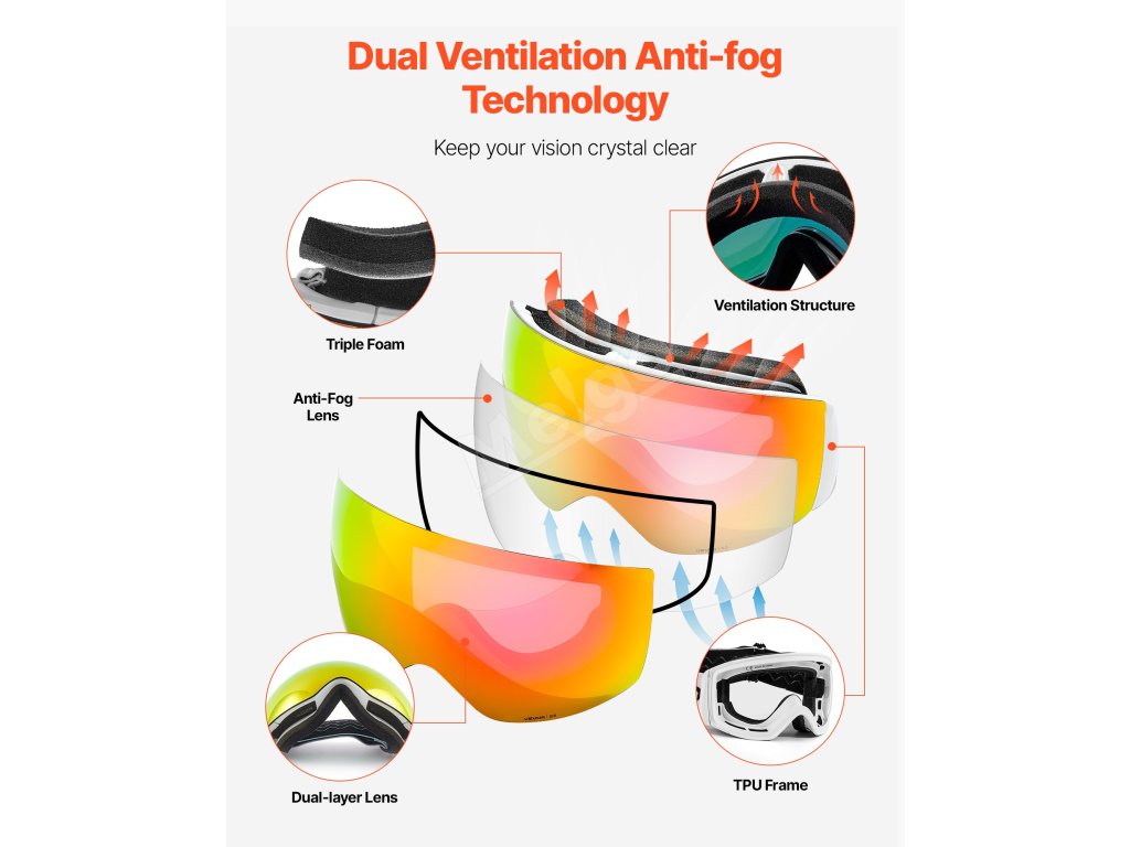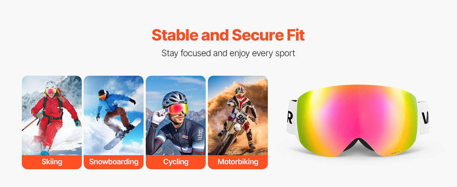 Priliehavý strih obopne tvar vašej tváre, takže lyžiarske okuliare zostanú na svojom mieste aj počas intenzívnej aktivity. Jasné videnie bez zahmlievania vás udrží sústredených, či už lyžujete, jazdíte na snowboarde alebo na bicykli.