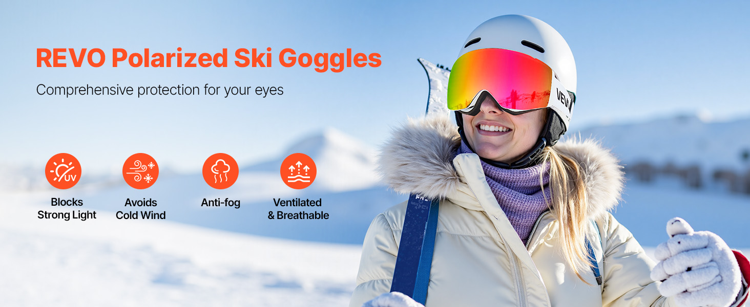 Tieto lyžiarske okuliare Revo blokujú ostré slnečné svetlo a znižujú oslnenie na snehu, čím pomáhajú predchádzať snežnej slepote. Chránia vás pred studeným vetrom, udržiavajú váš výhľad bez zahmlievania a udržiavajú čerstvé prúdenie vzduchu, takže si môžete s istotou užiť každú jazdu.