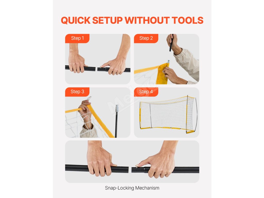 Príprava tejto prenosnej futbalovej bránky na akciu je vďaka zacvakávaciemu mechanizmu jednoduchá.