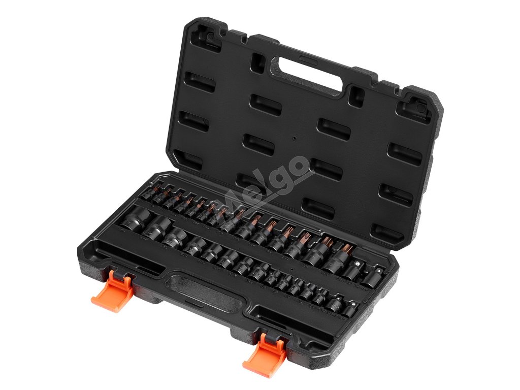 | Konfigurácia produktu | 31 ks bitov Torx + nástrčná hlavica E-Torx + sada adaptérov |