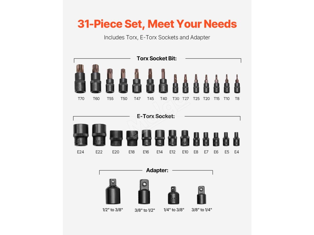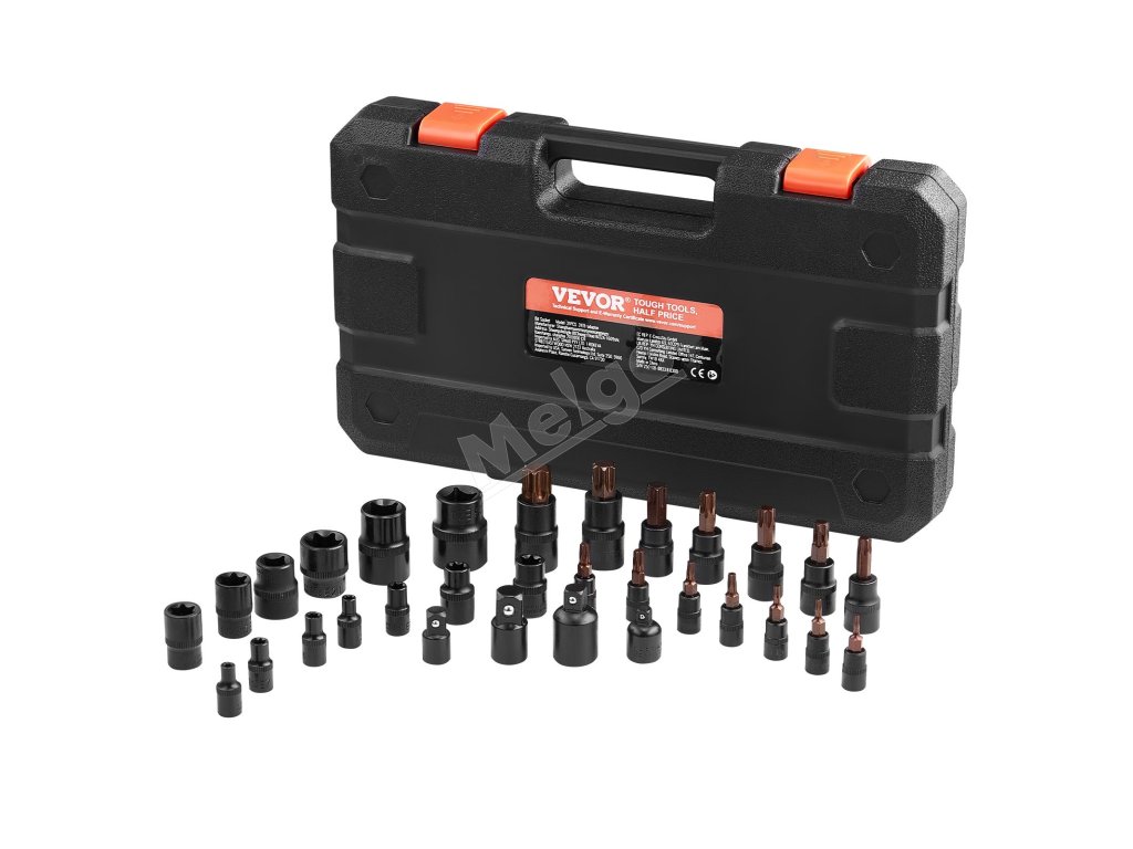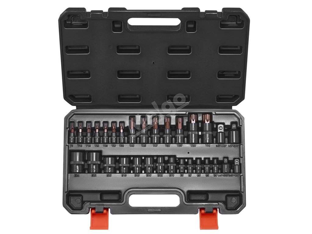 Sada torx bitov a nástrčných 31 diel T8–T70 a E4–E24, s adaptérom