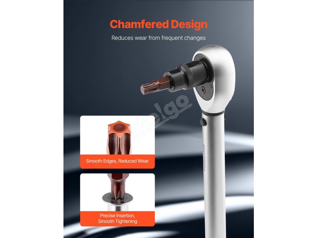 Konštrukcia so skosenými hranami zabezpečuje hladké zasúvanie, čím sa znižuje opotrebovanie a predlžuje životnosť sady imbusových hlavíc. Presné rozmery na bezpečné uchytenie rôznych typov skrutiek, značenie zostáva dobre viditeľné aj v slabo osvetlených priestoroch, čo umožňuje rýchlu a jednoduchú identifikáciu.