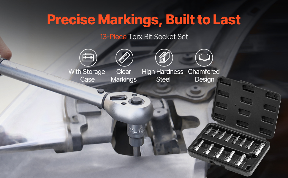 Sada torx nástrčných kľúčov 13 ks t8–t60 s2/cr‑v 1/4 in 3/8 in 1/2 in