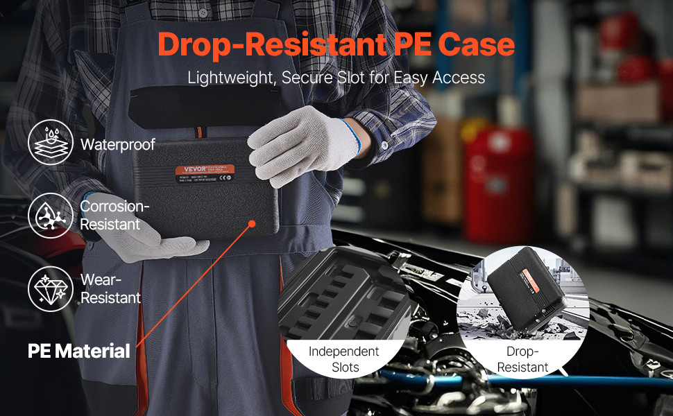 Už žiadne obavy z náhodného pádu alebo rozhádzaného náradia. Odolné PE úložné puzdro je vybavené bezpečnými otvormi pre každú zásuvku bitu, ktoré ich udržia pevne na mieste, aby sa zabránilo ich strate alebo poškodeniu. Jeho kompaktný dizajn zaručuje ľahké prenášanie a pohodlné skladovanie doma alebo na cestách.