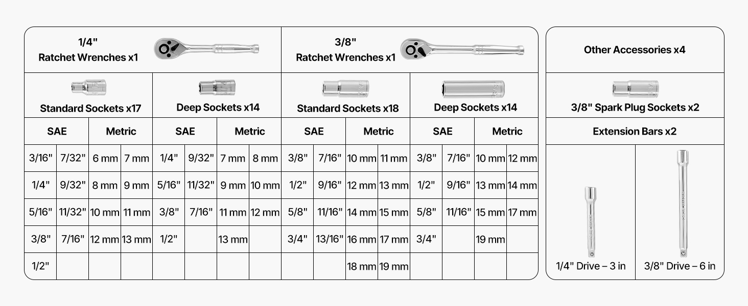 Táto sada nástrčiek 3/8 a 1/4 palca je vyrobená z vysokokvalitných materiálov odolných voči korózii a poskytuje vynikajúci rázový výkon. Konštrukcia s vysokým krútiacim momentom zaručuje dostatočnú silu na riešenie zadretých alebo skorodovaných matíc, čo urýchľuje a uľahčuje opravy a demontáž.