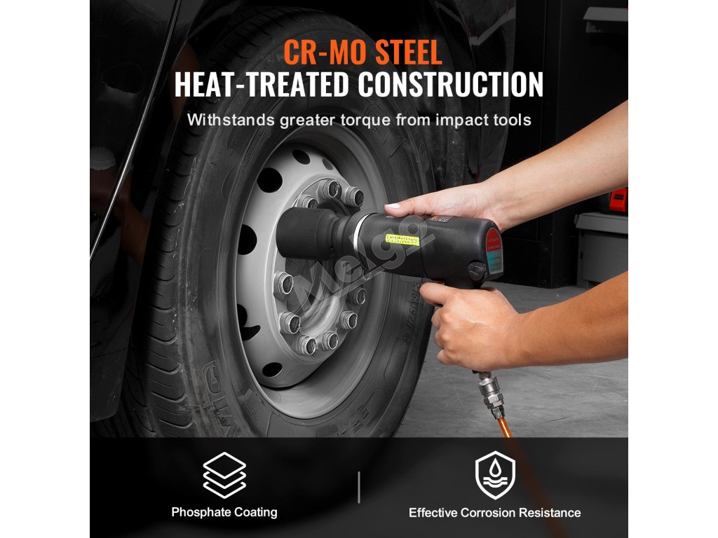 Súprava nástrčných hlavíc na matice náprav je vyrobená z vysokopevnostnej ocele CR-MO odolnej voči korózii a je konštruovaná tak, aby vydržala. Vysokokontrastné označenia veľkostí umožňujú rýchlu identifikáciu, zatiaľ čo 6-bodový dizajn bezpečne uchopí matice, aby sa zabránilo ich skĺznutiu alebo poškodeniu.