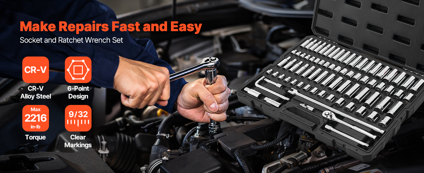Sada nástrčných hlavíc 76 dielov, 9,5 mm, SAE a metrické, hlboké