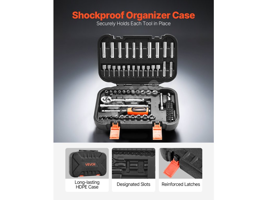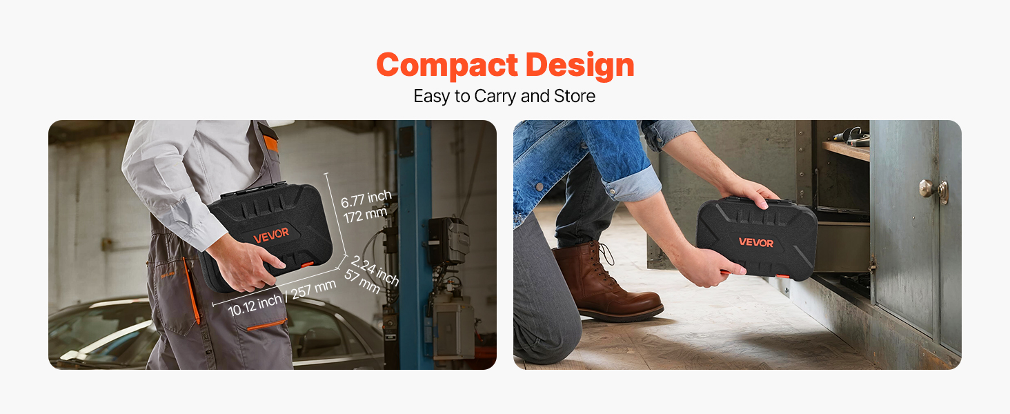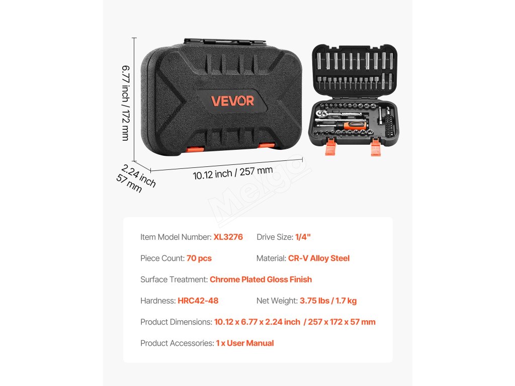 Kufrík s metrickou sadou nástrčiek je navrhnutý na prenášanie a má rozmery 10,12 x 6,77 x 2,24 palca / 257 x 172 x 57 mm. Jeho kompaktné rozmery sa ľahko zmestia do stiesnených priestorov alebo sa dajú prenášať na cestách, čo zaručuje efektívnu prácu kdekoľvek.