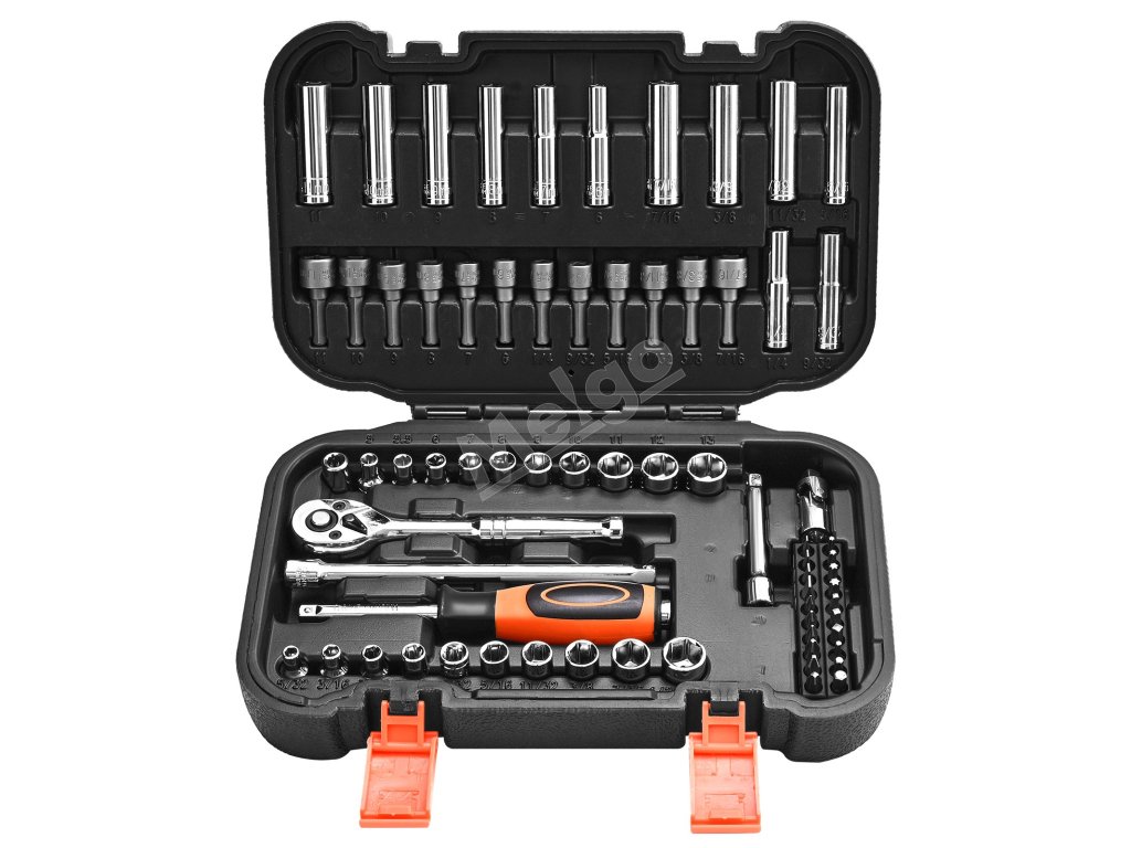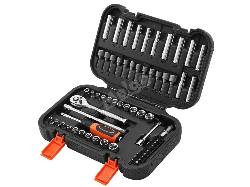 Sada nástrčných hlavíc a račňa 70 dielov, 6.4 mm, SAE/metrické