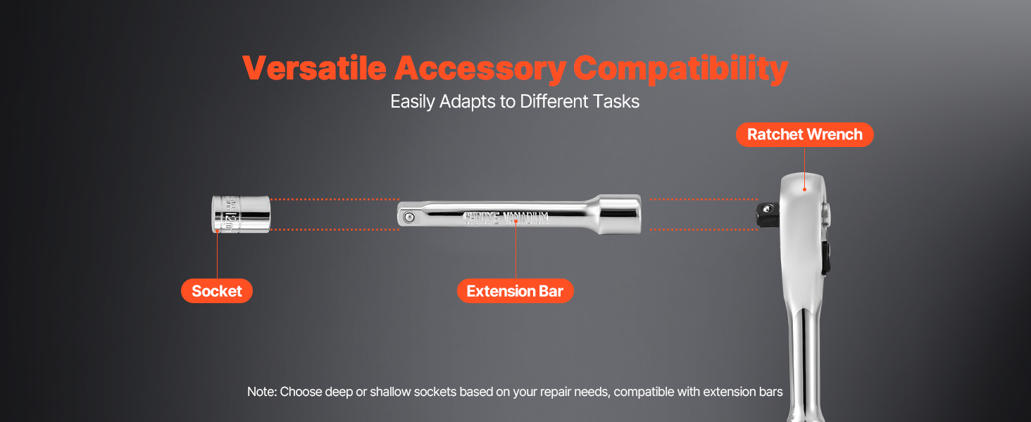 Precízna sada nástrčných a račňových hlavíc bez problémov spolupracuje s rôznymi nástrčnými hlavicami a predlžovacími tyčami. Rýchloupínacie spoje umožňujú plynulé prepínanie medzi nástrojmi, čím sa výrazne zvyšuje efektivita a pohodlie pri rôznych úlohách.