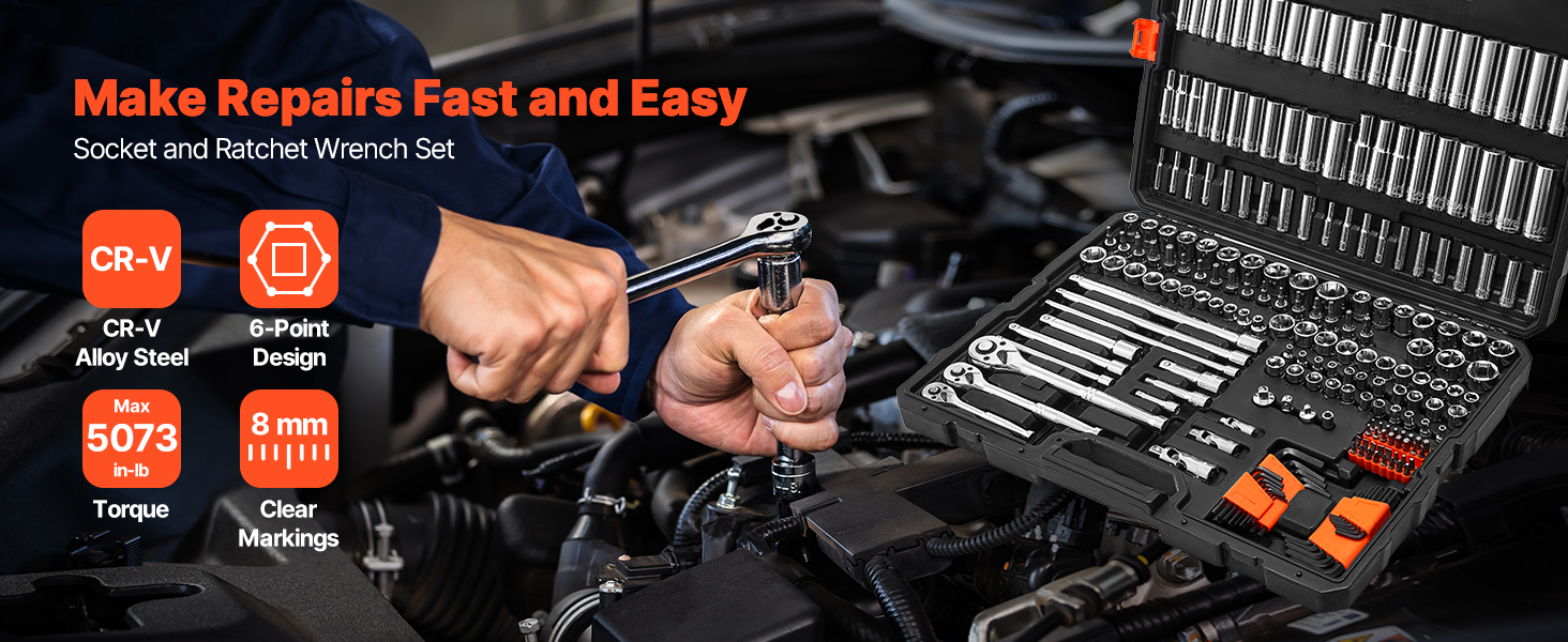 Táto sada nástrčiek 3/8, 1/4 a 1/2 palca je vyrobená z vysokokvalitných materiálov odolných voči korózii a poskytuje vynikajúci rázový výkon. Konštrukcia s vysokým krútiacim momentom zaisťuje dostatočnú silu na riešenie zadretých alebo skorodovaných matíc, čím urýchľuje a uľahčuje opravy a demontáž.