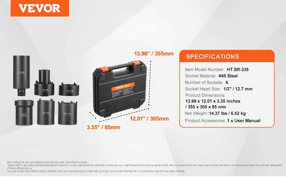 VEVOR Sada nástrčných kľúčov na matice vretena 1/2 palca 6 kusov