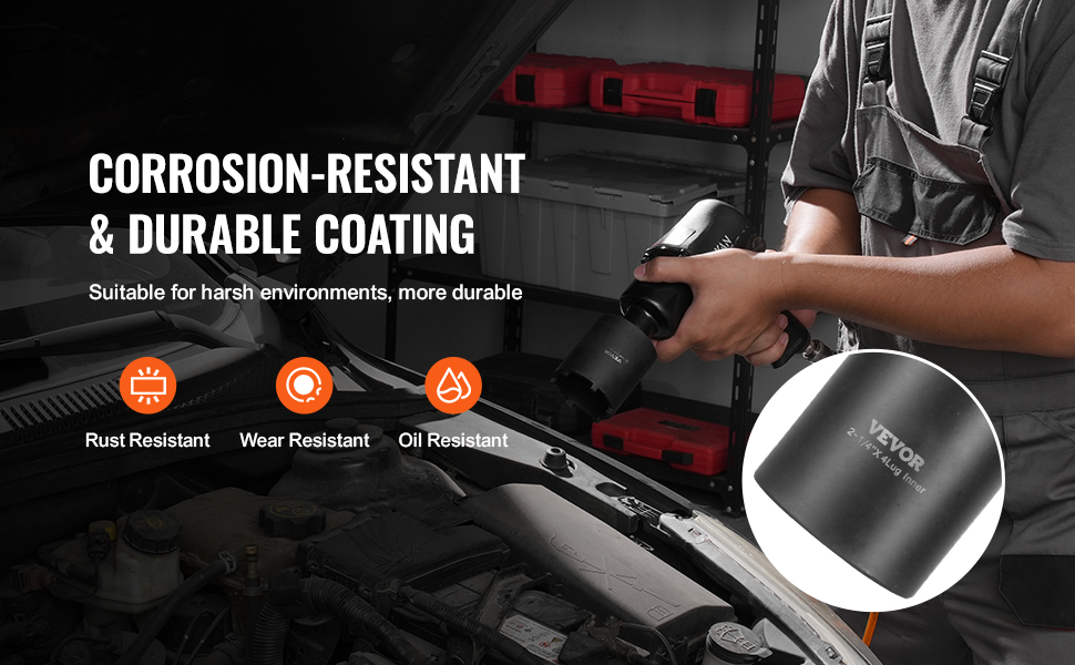 Každá nástrčná matica nápravy má čiernu povrchovú úpravu, ktorá zvyšuje odolnosť proti korózii a životnosť. Sú odolné proti korózii, oleju a špine, vďaka čomu sú vysoko odolné na dlhodobé používanie v garážach a v prostredí opráv vozidiel.