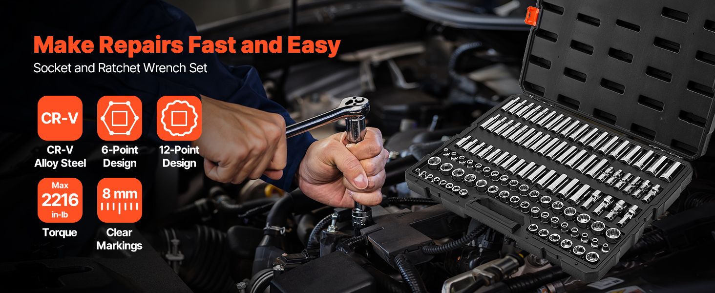 Presne dimenzované nástrčné hlavice zaručujú ideálne prispôsobenie račňovému kľúču. Bez námahy vymieňajte medzi rôznymi veľkosťami, aby ste zvýšili efektivitu a prispôsobivosť pre širokú škálu aplikácií.
