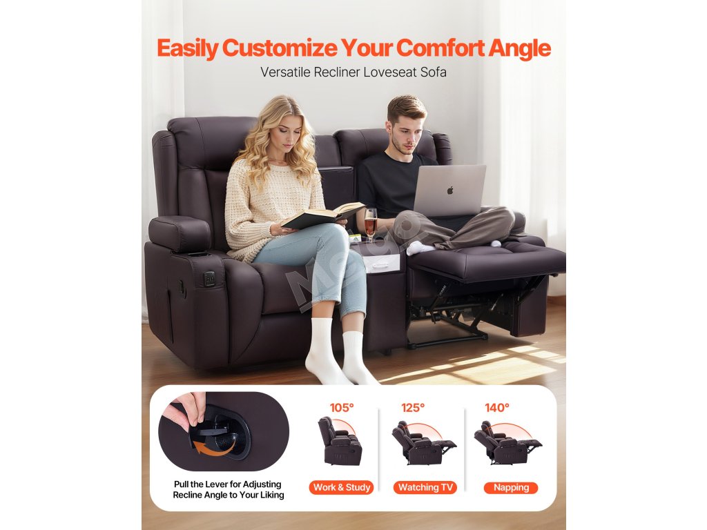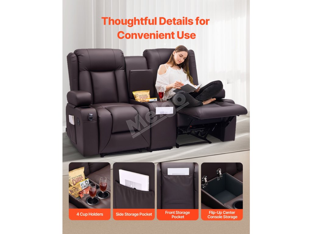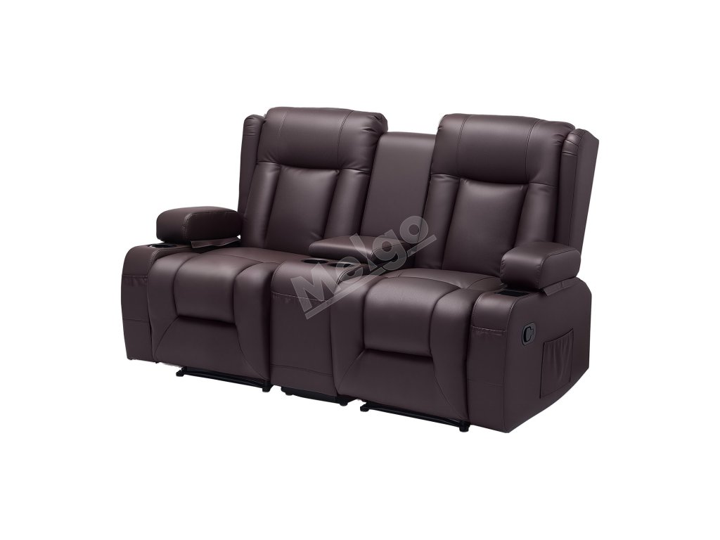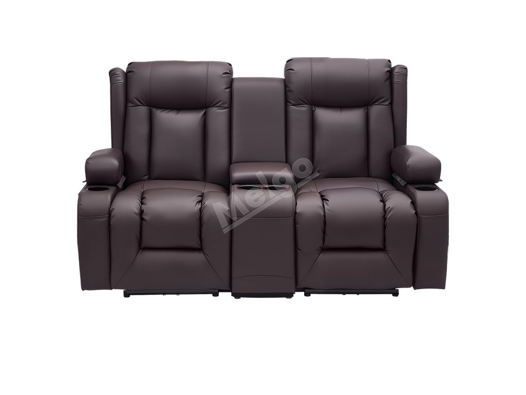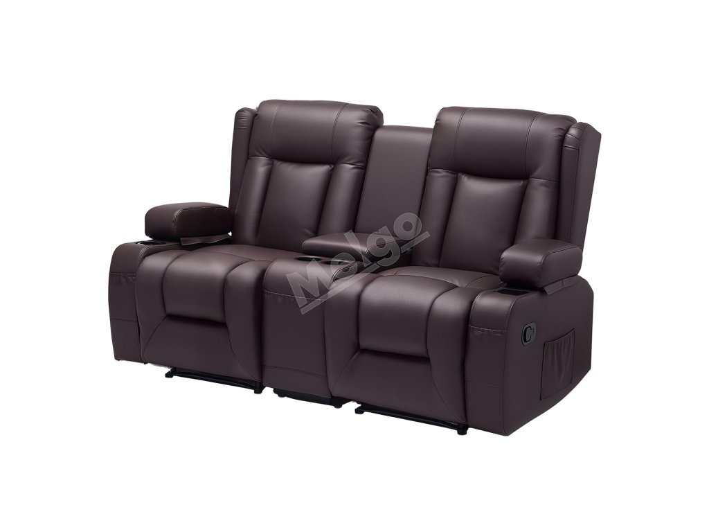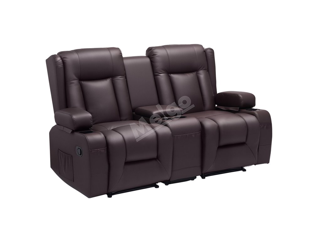 Dvojmiestna manuálna polohovacia sedačka z PU s USB a držiakmi, hnedá