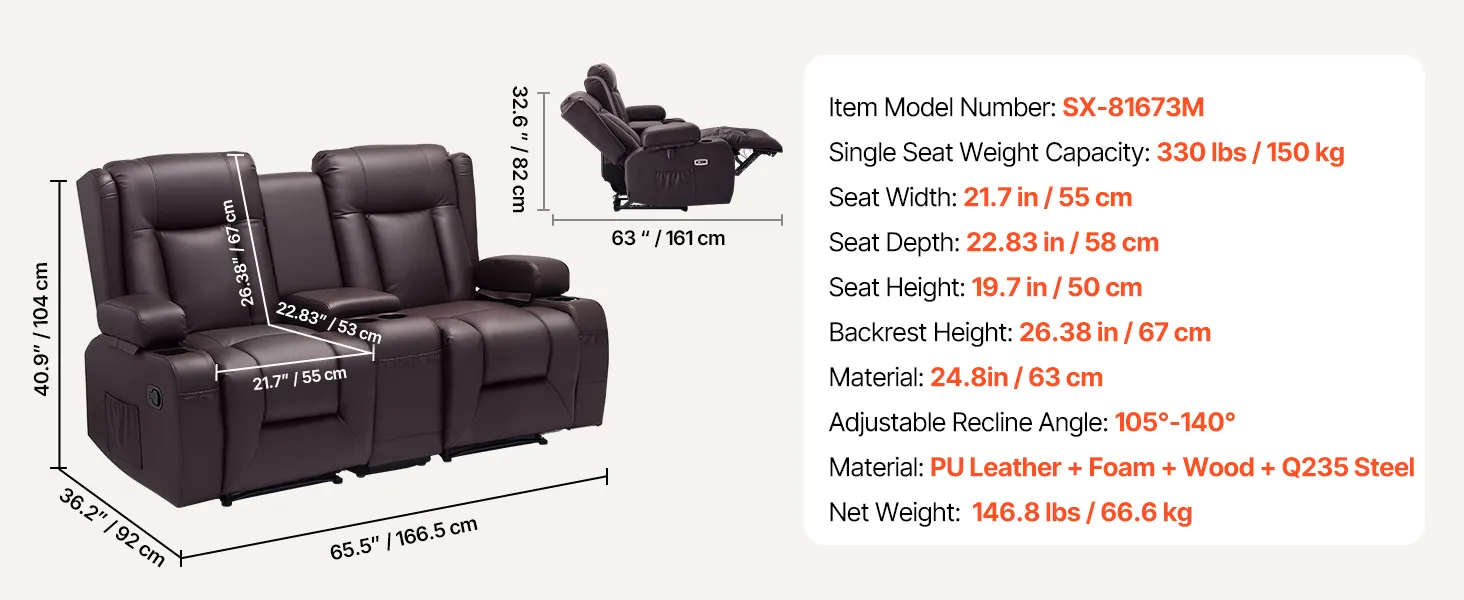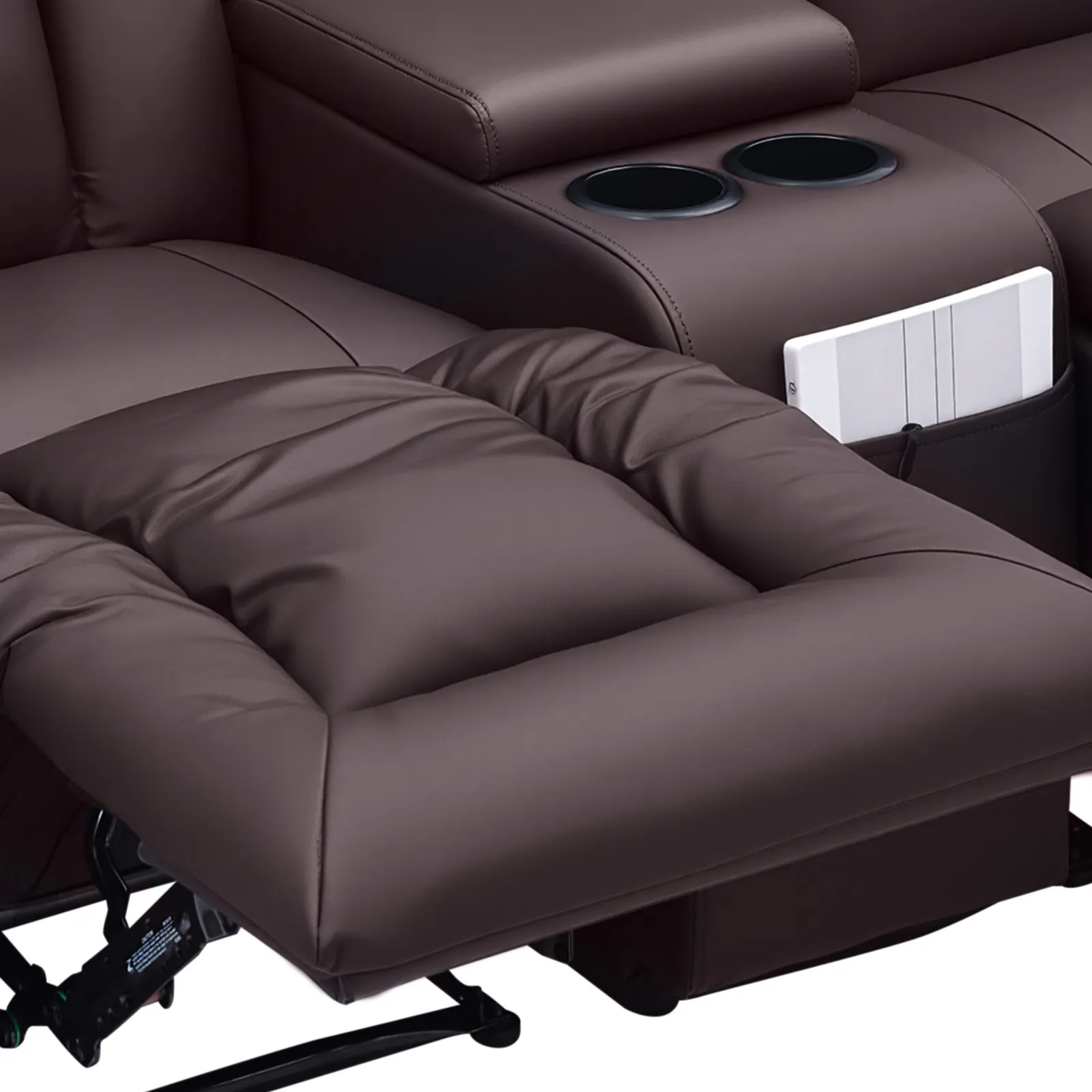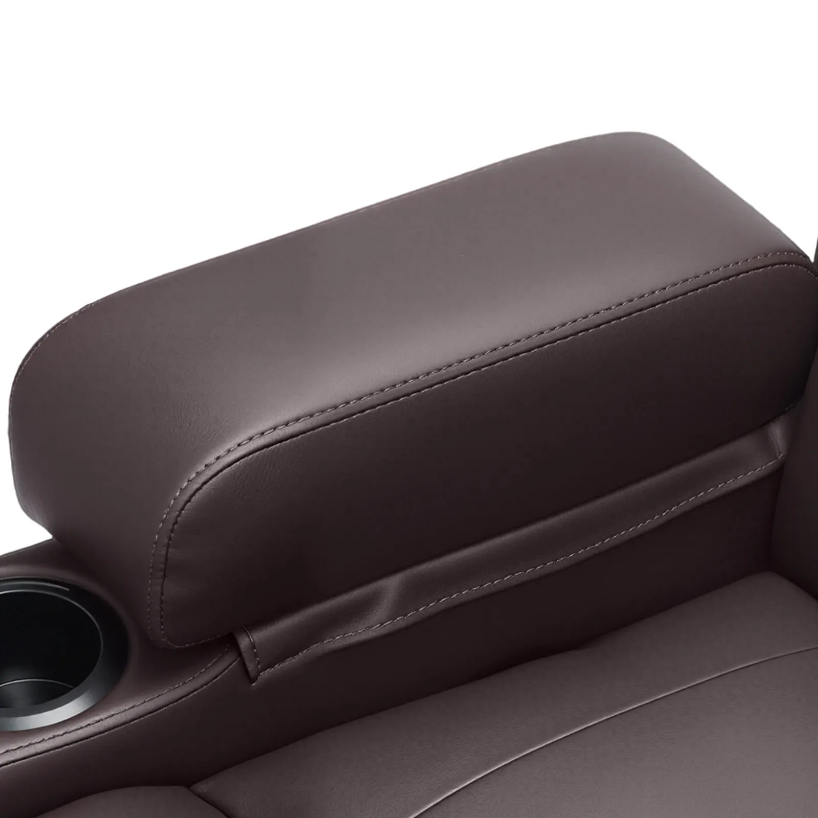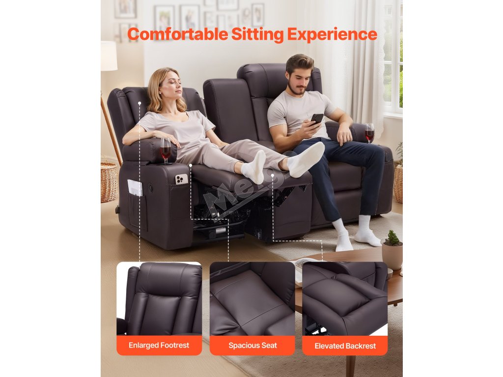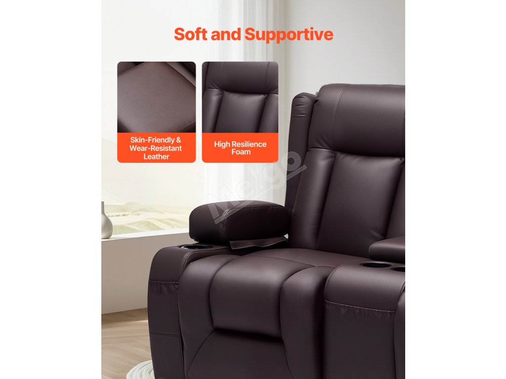 Dvojmiestna manuálna polohovacia sedačka z PU s USB a držiakmi, hnedá