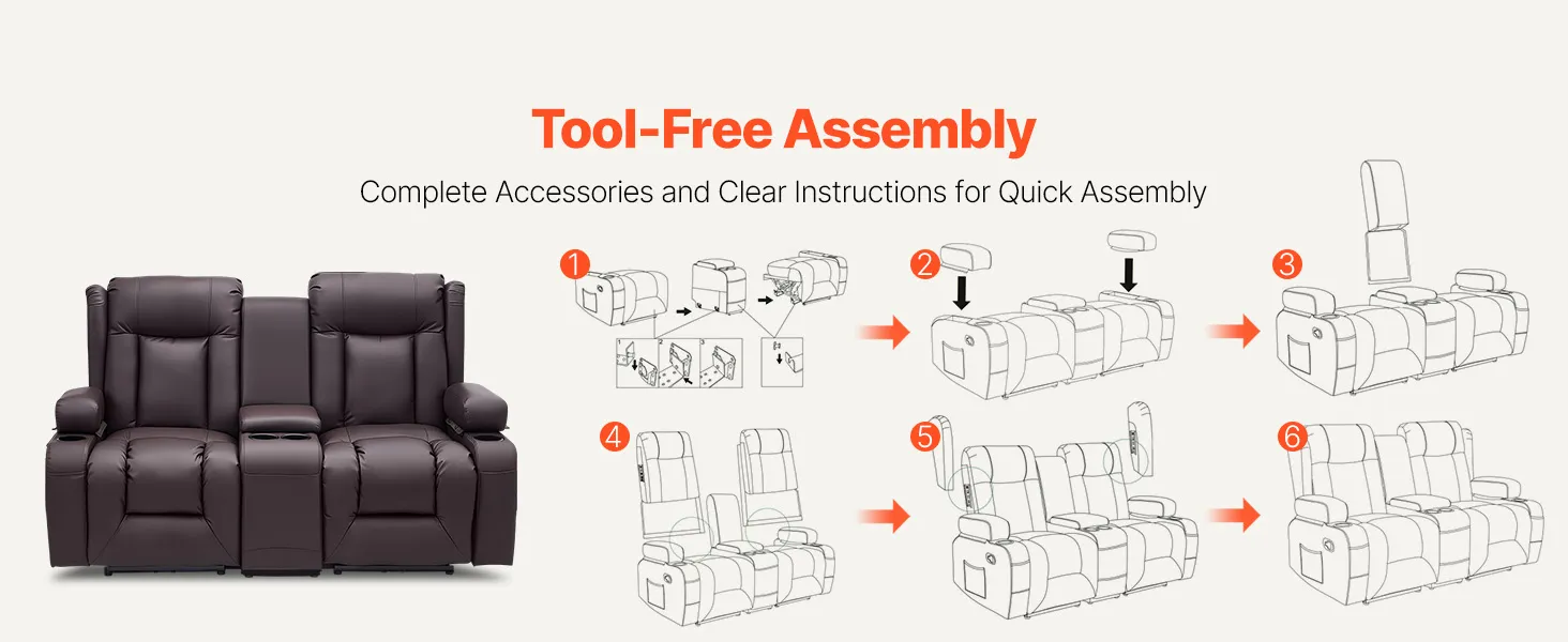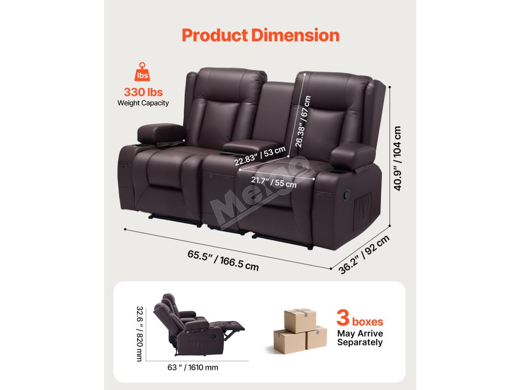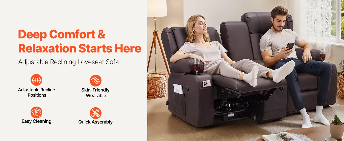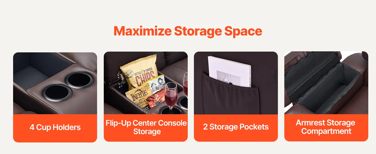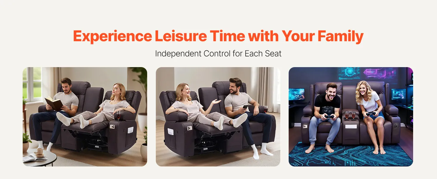 Dvojmiestna manuálna polohovacia sedačka z PU s USB a držiakmi, hnedá