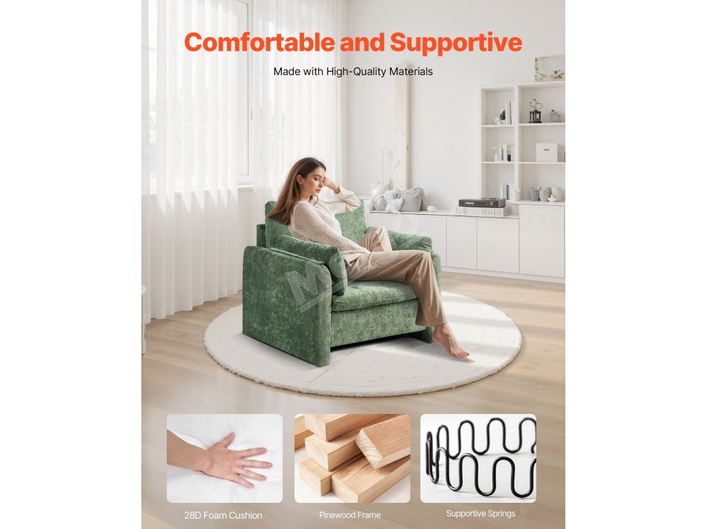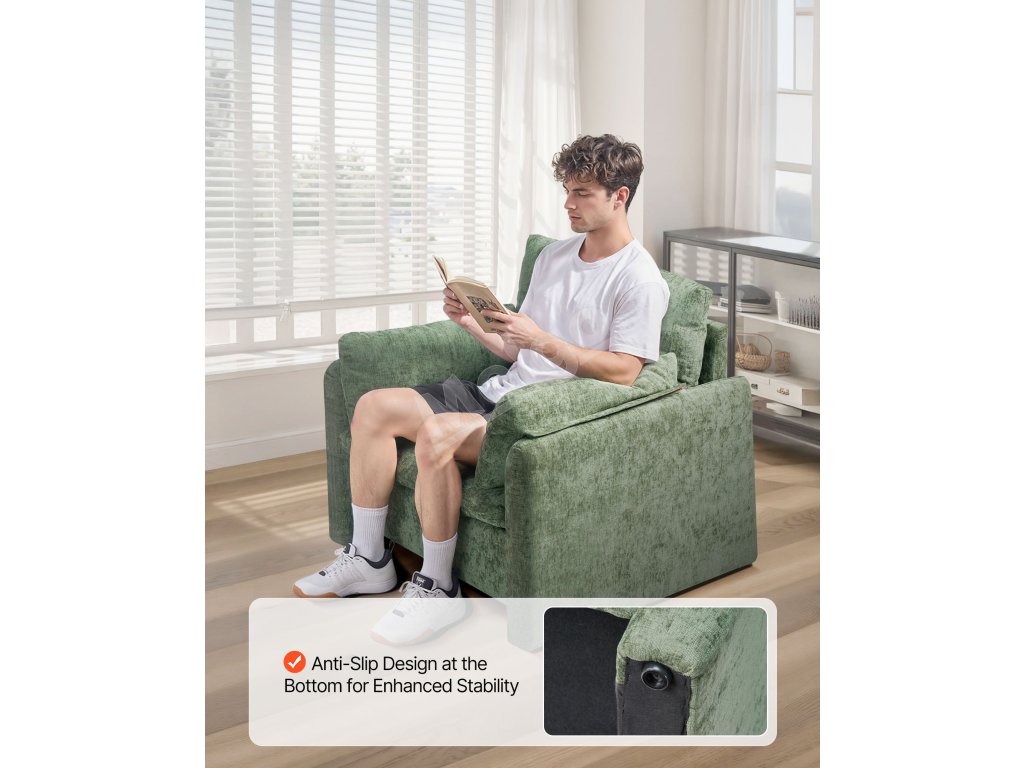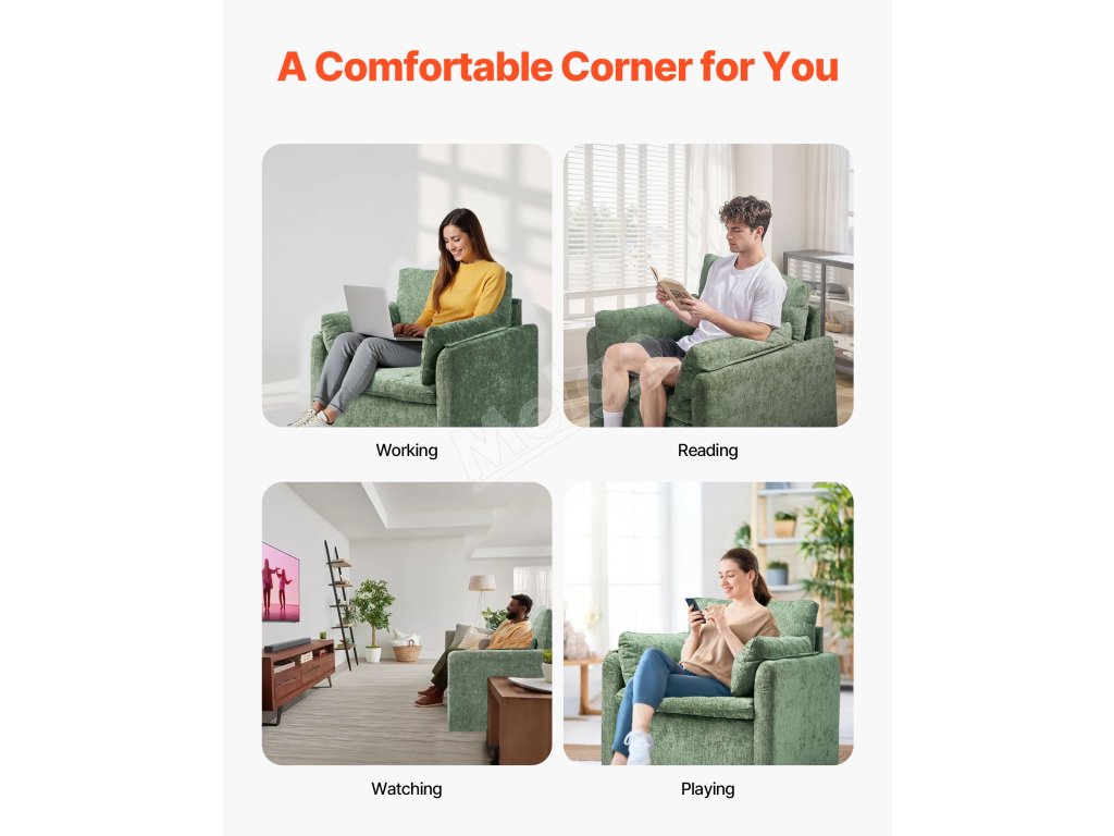 Vyrobené z kvalitného rámu z borovicového dreva, huby s vysokou hustotou a podporných pružín poskytuje trvalú oporu, vďaka ktorej môžete odpočívať a čítať počas celého dňa bez únavy. Je tiež vynikajúcou voľbou na dlhé čítanie alebo ako kreslo na čítanie, v ktorom môžete relaxovať.