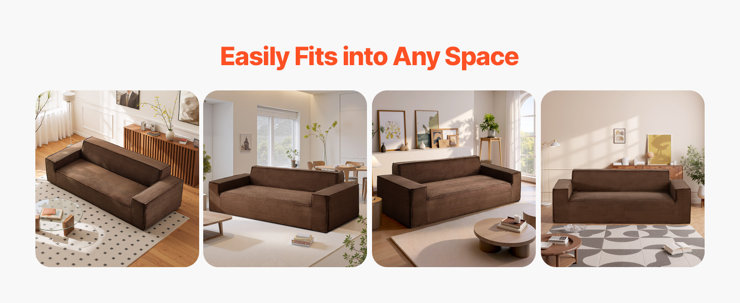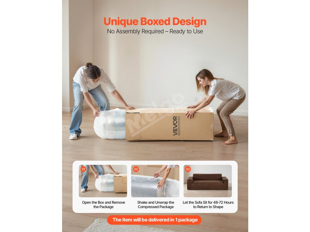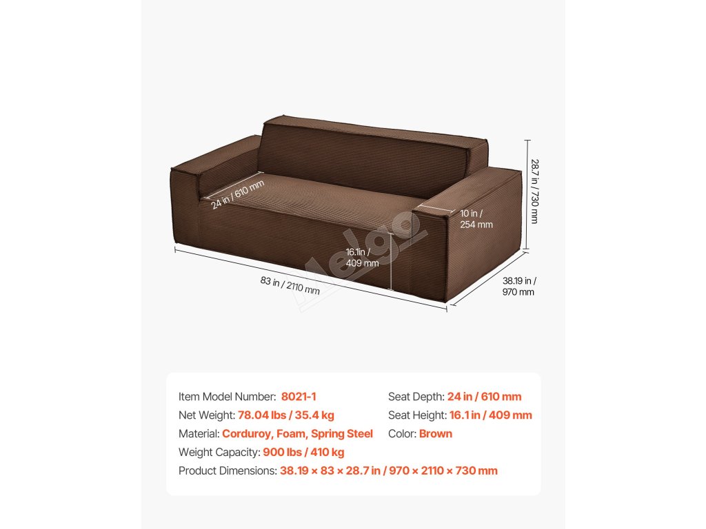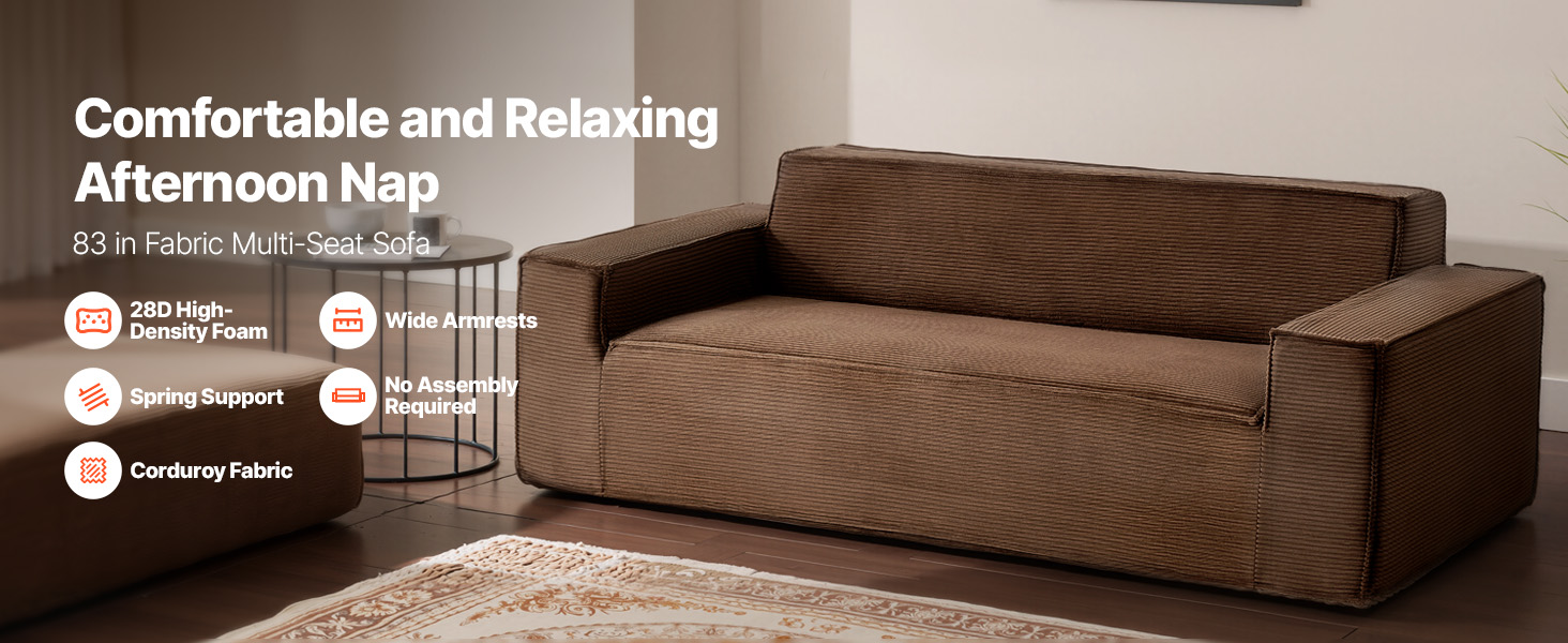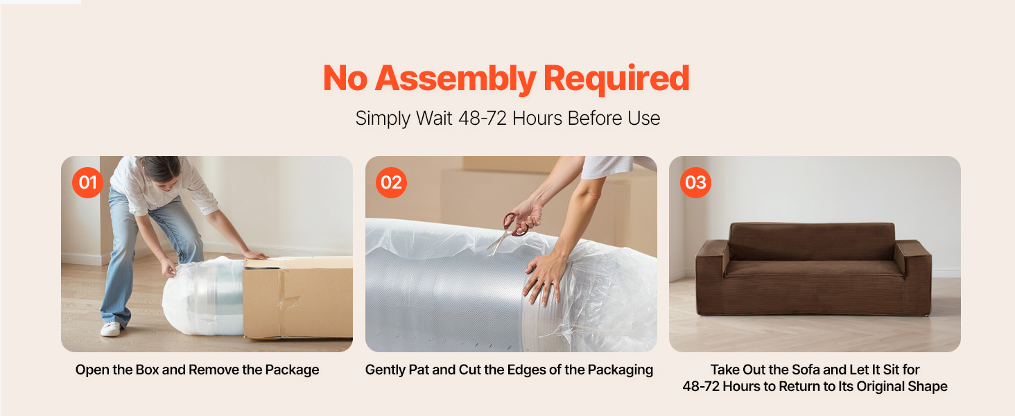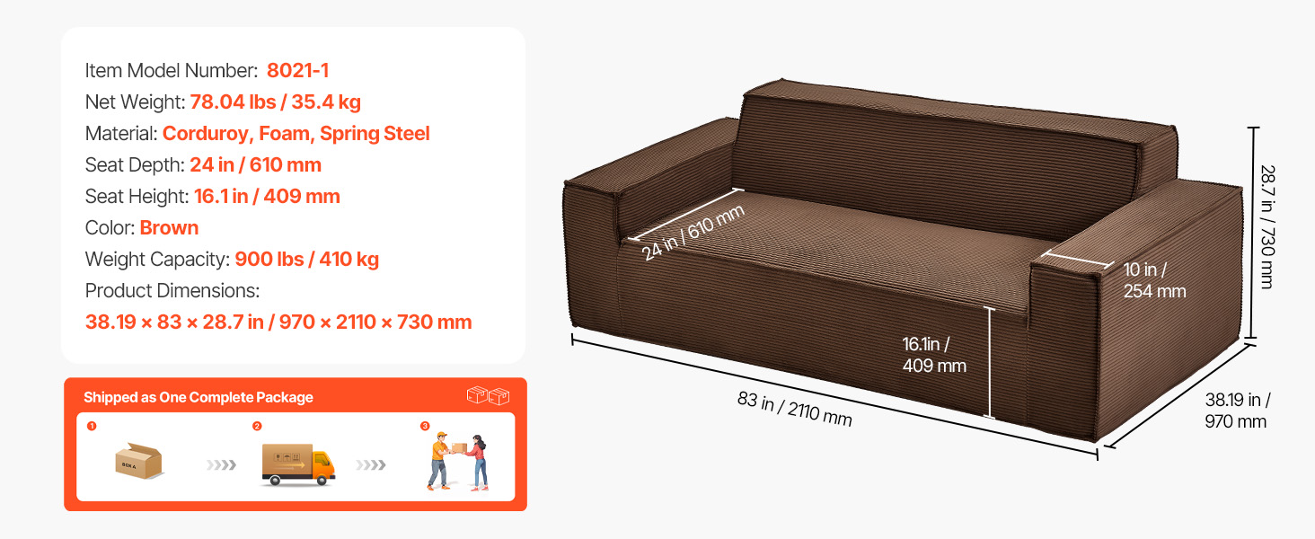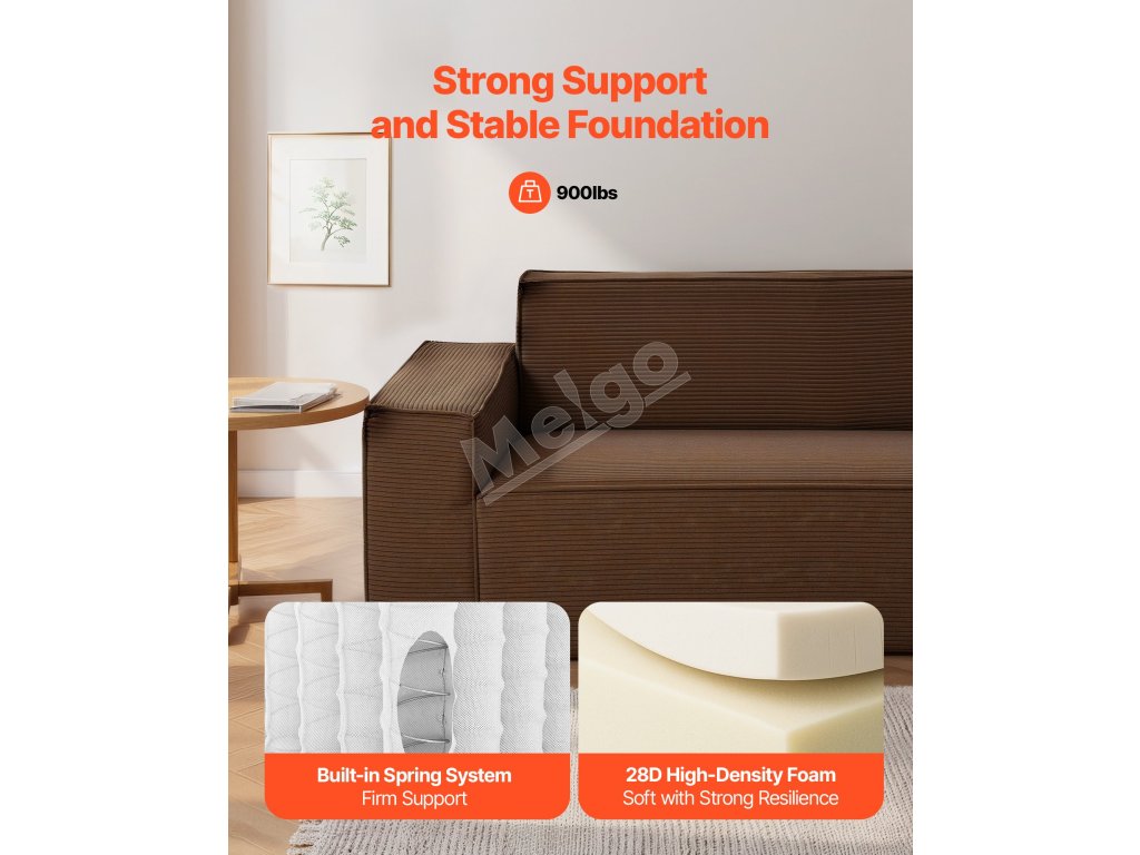 Táto rozkladacia pohovka s dĺžkou 83 palcov / 2110 mm je vybavená 28D penou s vysokou hustotou a systémom pružinových cievok pre výnimočné pohodlie a oporu. K pokožke šetrná, priedušná manšestrová tkanina a široké podrúčky poskytujú mäkkosť a príjemný dotyk. Bez nutnosti montáže, stačí rozbaliť, nechať usadiť 48-72 hodín.