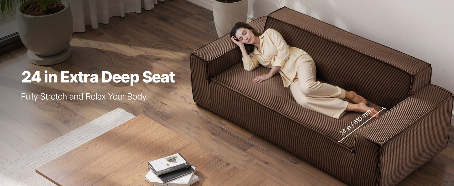 Hlboká konštrukcia sedadla pohovky poskytuje dostatok priestoru na natiahnutie alebo schúlenie, čím ponúka dokonalé pohodlie a relaxáciu. Či už čítate, sledujete televíziu alebo si zdriemnete, splní vašu potrebu pohodlia.
