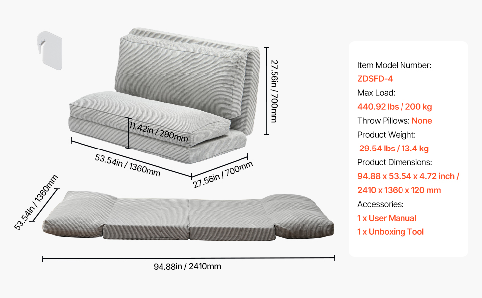 Nie je potrebná žiadna montáž - stačí ju vytiahnuť a môžete ju používať! Bez námahy môžete prepínať medzi rozkladacím gaučom a pohodlným vankúšom, čím ušetríte čas a energiu.