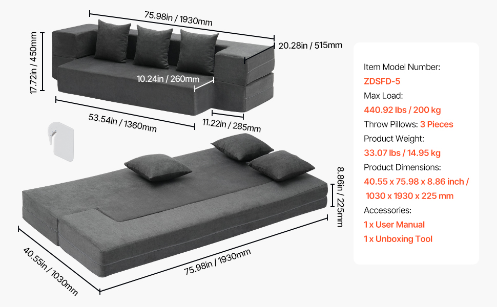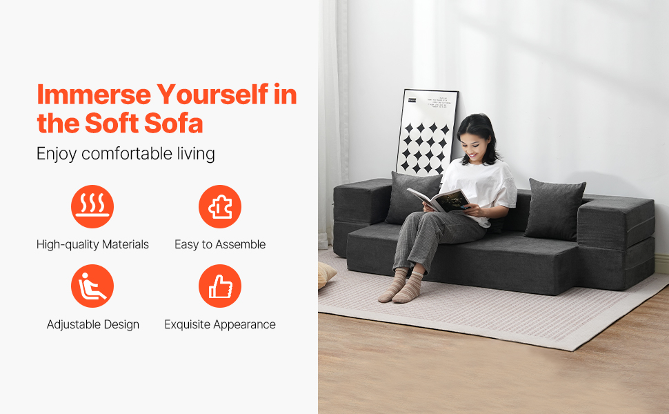 Táto rozkladacia pohovka vyrobená z vysokokvalitnej peny 25D je mäkká, rovnomerne štruktúrovaná a rýchlo sa vracia do pôvodného tvaru. Je navrhnutá tak, aby odolávala deformácii, a ponúka vám dlhotrvajúcu a stabilnú oporu pre maximálne pohodlie.