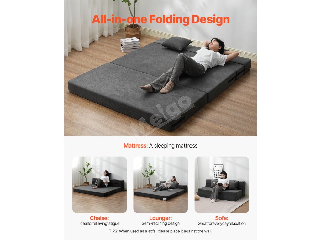 Táto multifunkčná rozkladacia pohovka sa ľahko skladá, skladuje a prenáša, takže je univerzálnym riešením pre akýkoľvek priestor. Či už potrebujete pohodlné lôžko pre hostí alebo útulné sedenie pre seba, prispôsobí sa vašim potrebám a ponúka maximálnu flexibilitu v malých obytných priestoroch.