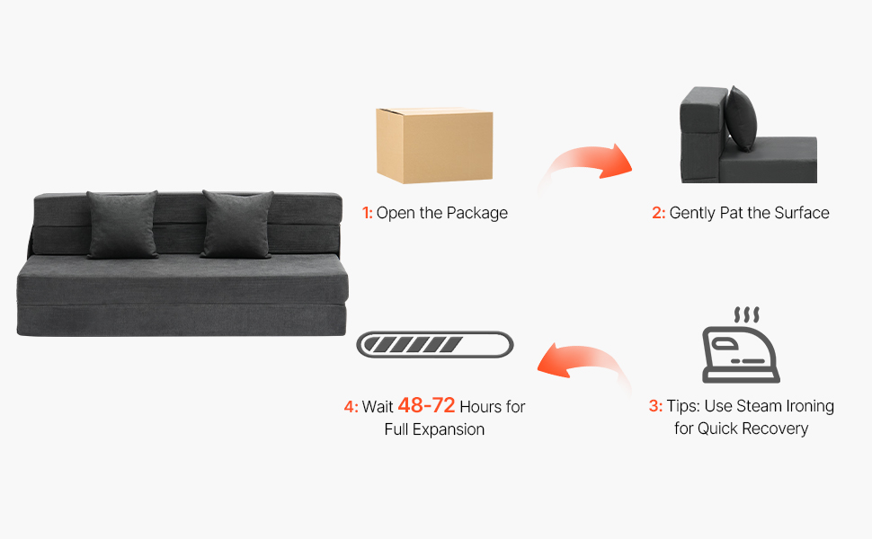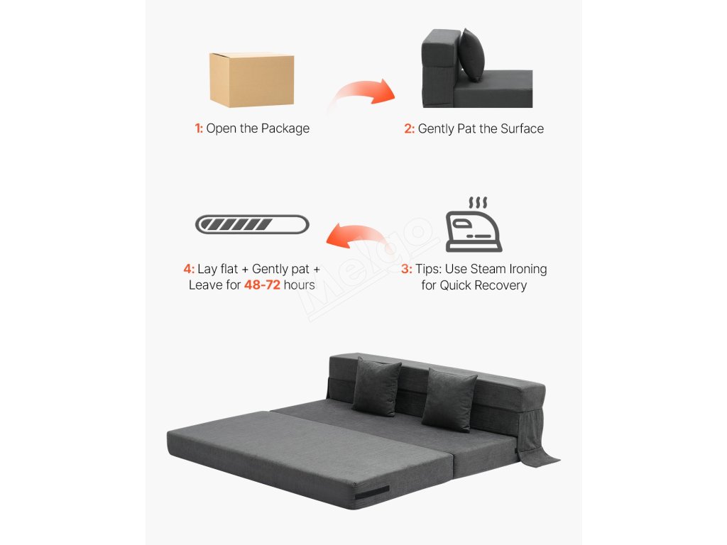 Nie je potrebná žiadna montáž - stačí ju vytiahnuť a môžete ju používať! Bez námahy môžete prepínať medzi rozkladacím gaučom a pohodlným vankúšom, čím ušetríte čas a energiu.