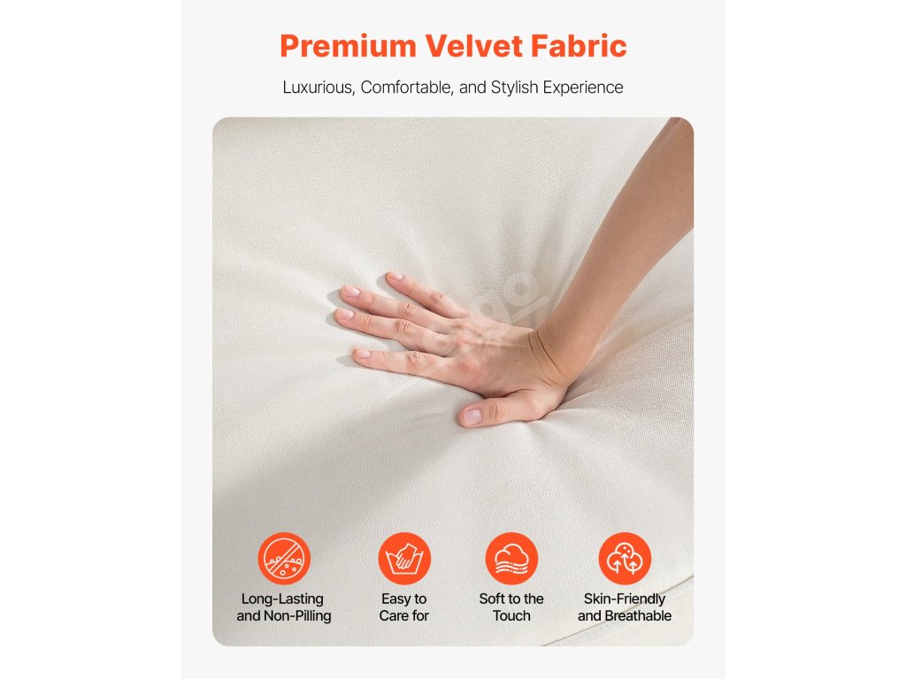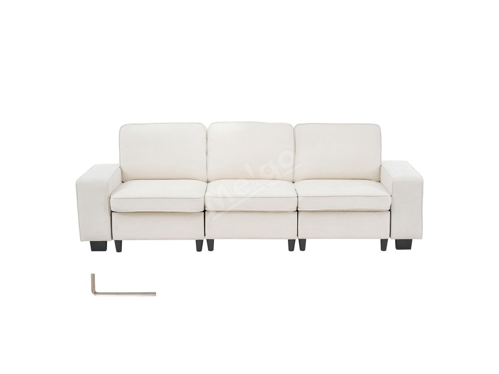 Trojmiestna pohovka je navrhnutá tak, aby sa prispôsobila prirodzeným krivkám vášho tela, a poskytuje pevnú, ale pohodlnú oporu vďaka kombinácii rámu z masívneho dreva a mäkkej 28D peny s vysokou hustotou. Priedušná zamatová tkanina zaručuje dlhotrvajúce pohodlie, vďaka čomu bude váš čas odpočinku ešte príjemnejší.