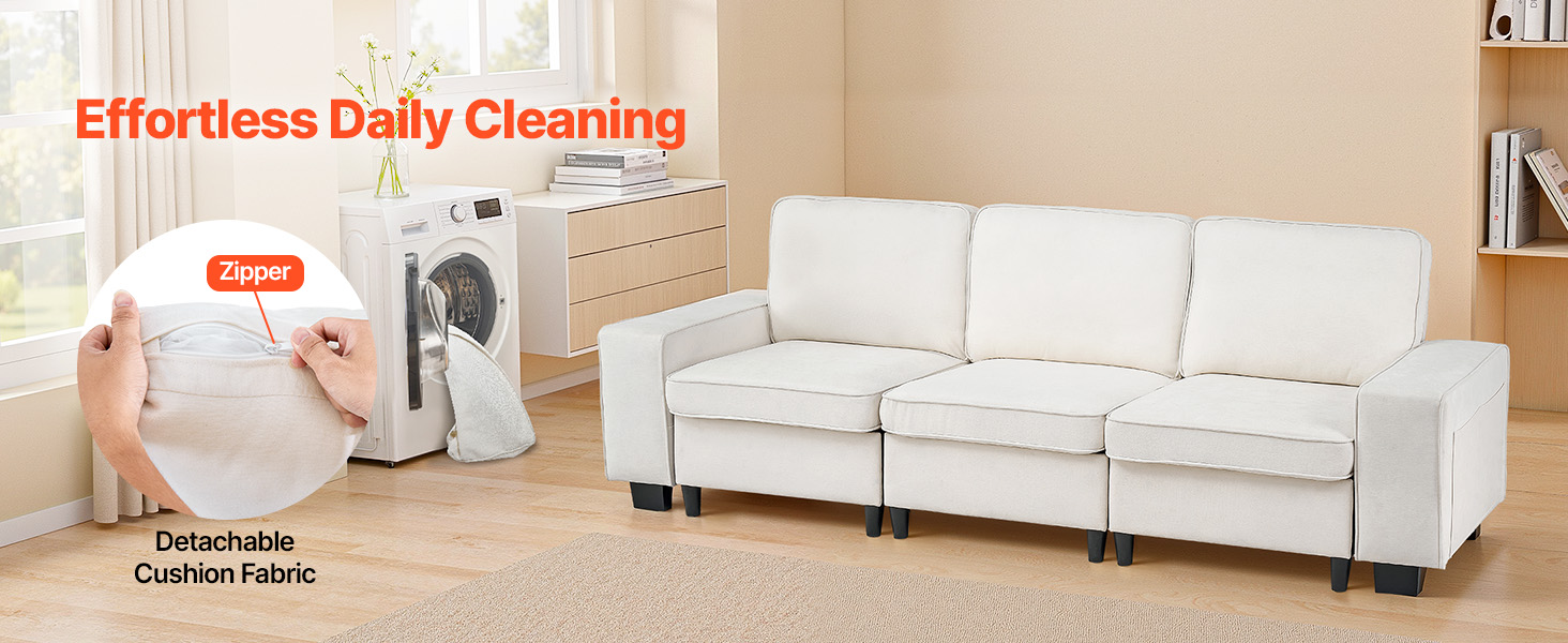 Obaly vankúšov sú odnímateľné, čo uľahčuje čistenie a údržbu pohovky. Či už ide o pravidelné utieranie prachu alebo hĺbkové čistenie, modulárnu pohovku môžete ľahko udržiavať sviežu.