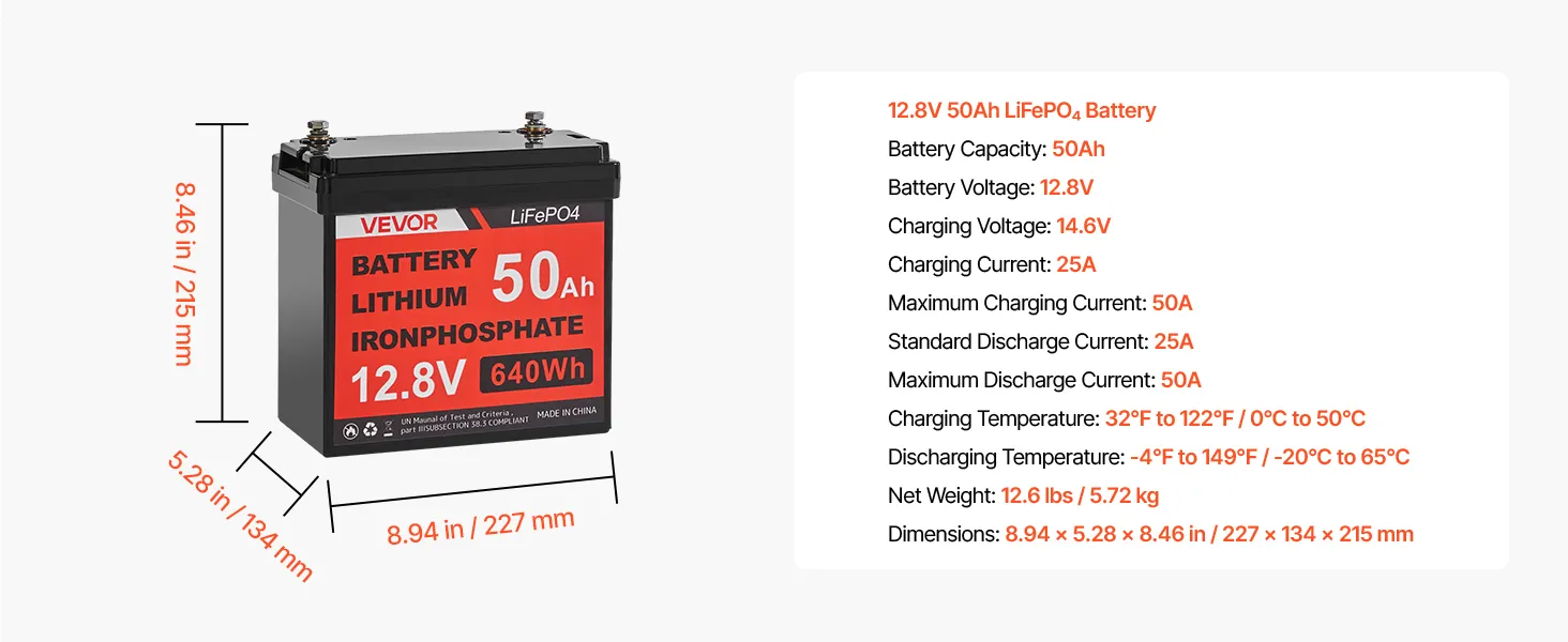 | LiFePO₄ batéria | 12.8V 50Ah |