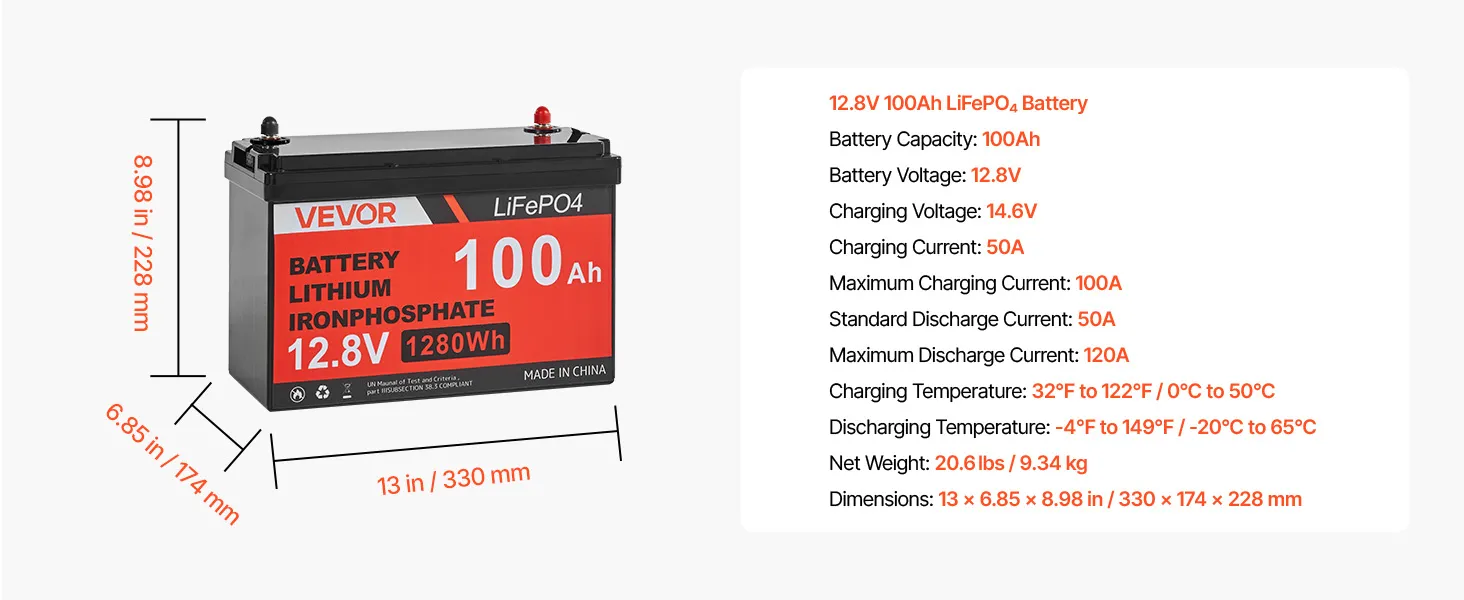 | LiFePO₄ batéria | 12.8V 100Ah |