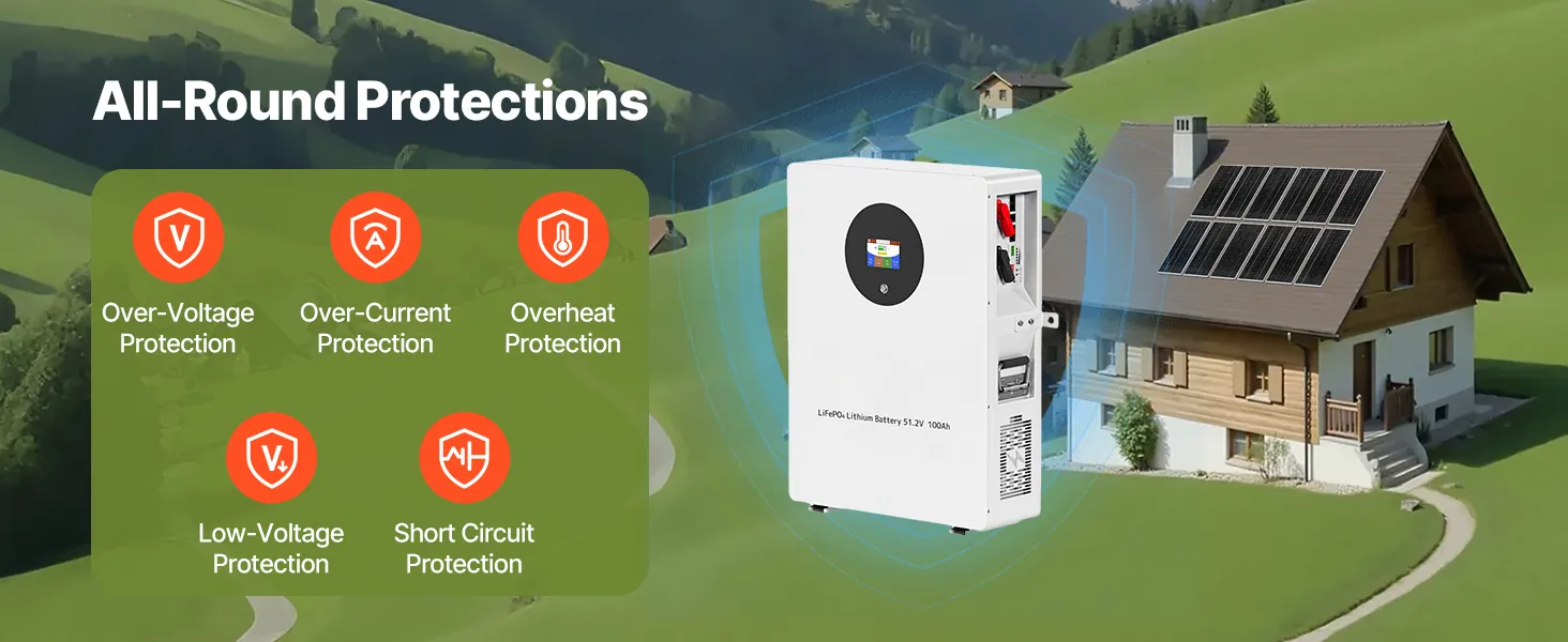 Vysokokvalitná batéria LiFePO₄ podporuje 4000-15 000 cyklov hlbokého nabitia. Zabudovaný systém BMS poskytuje inteligentnú ochranu a stabilný výstup, čím poskytuje trvalý výkon pre aplikácie mimo siete.