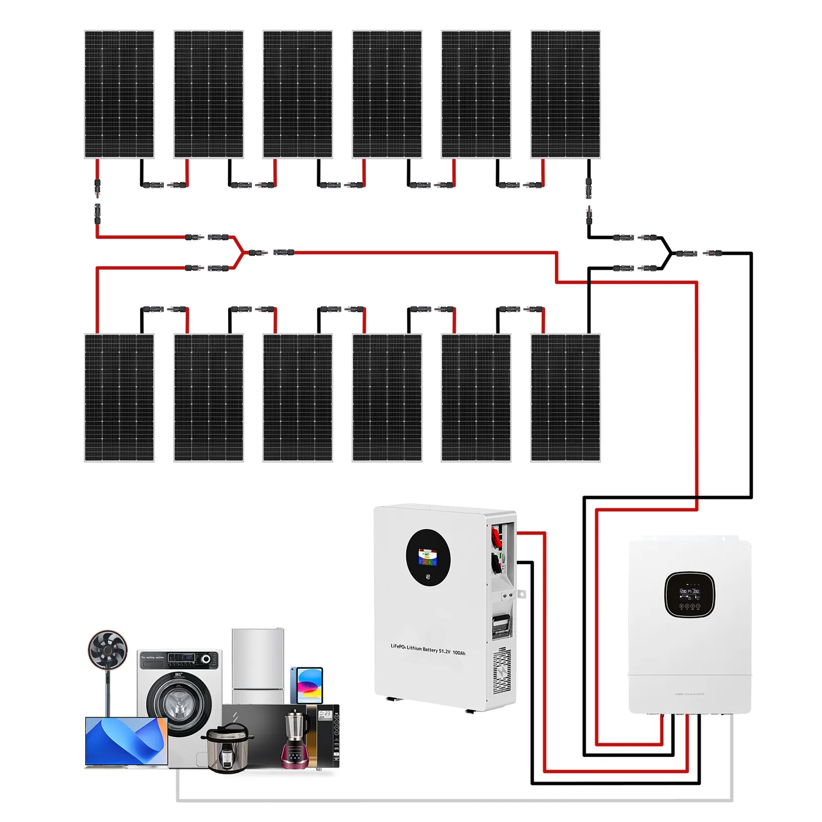 Solárna súprava 2400W 48V, 12×200W panely, 51.2V 100Ah LiFePO4