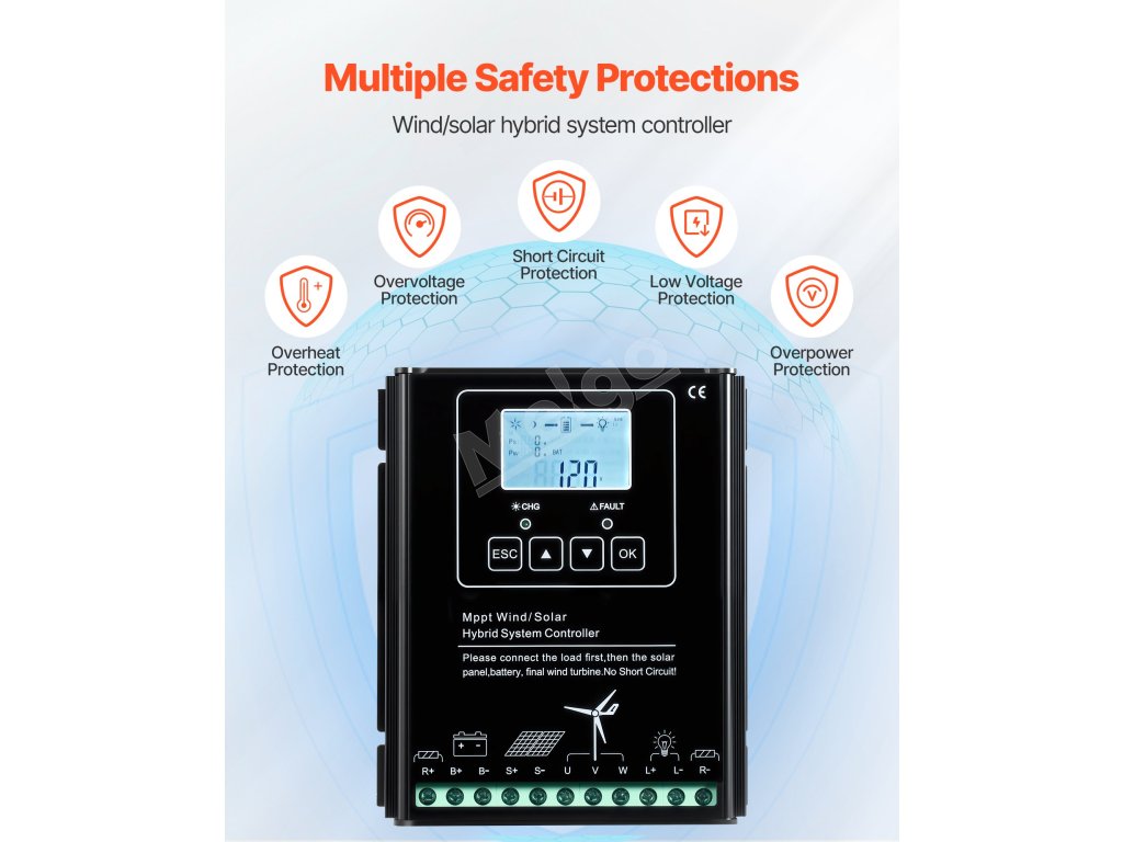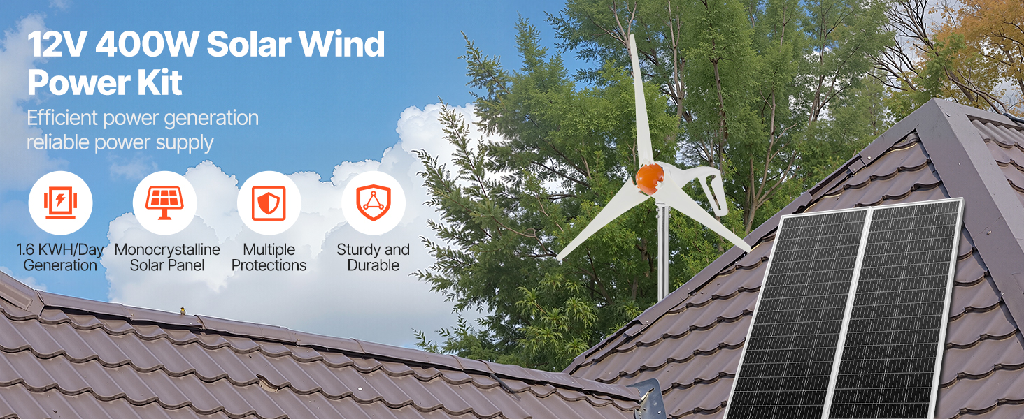 Premeňte slnečné svetlo a vietor na spoľahlivú energiu s našou súpravou 2 ks * 100 W solárnych panelov + 200 W veternej turbíny, doplnenou o MPPT regulátor hybridného systému vietor/slnko. Poskytuje nepretržitú energiu bez ohľadu na to, či je deň alebo noc, takže si môžete kedykoľvek užívať čistú energiu bez obáv z výpadkov.