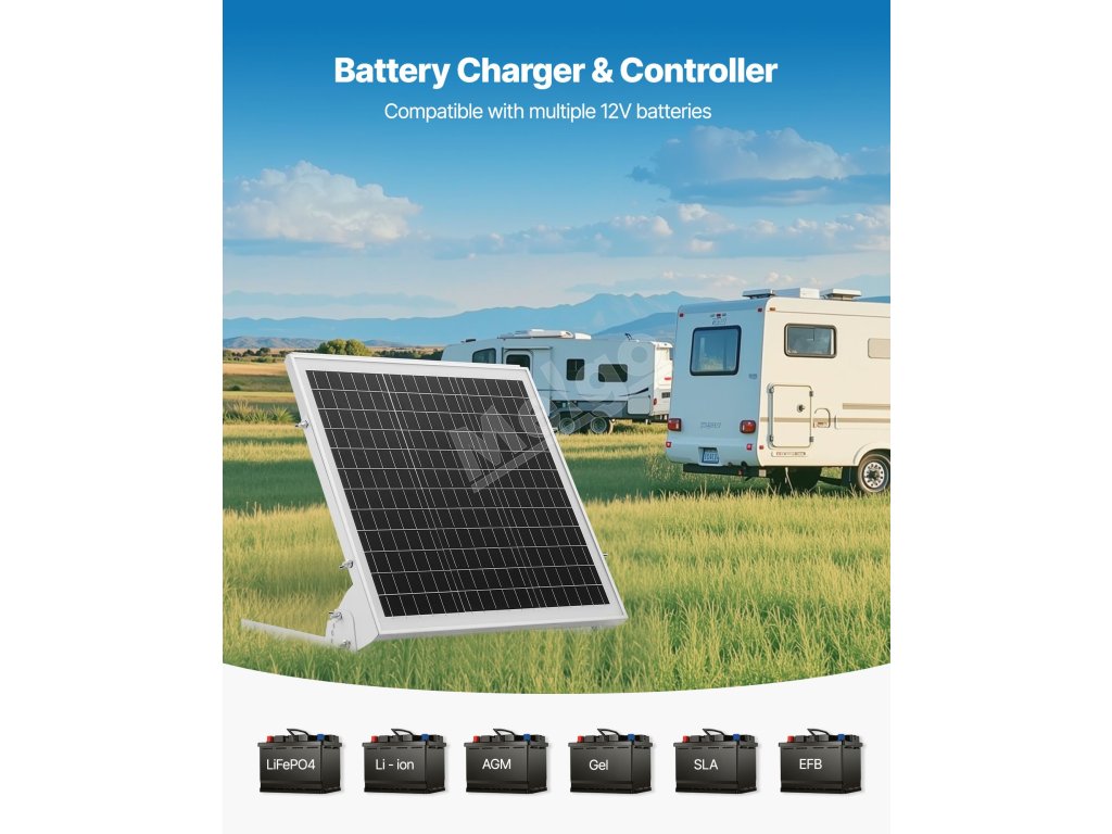 Solárny nabíjač 20W 12V mppt, mono panel, ip65, nastaviteľný držiak