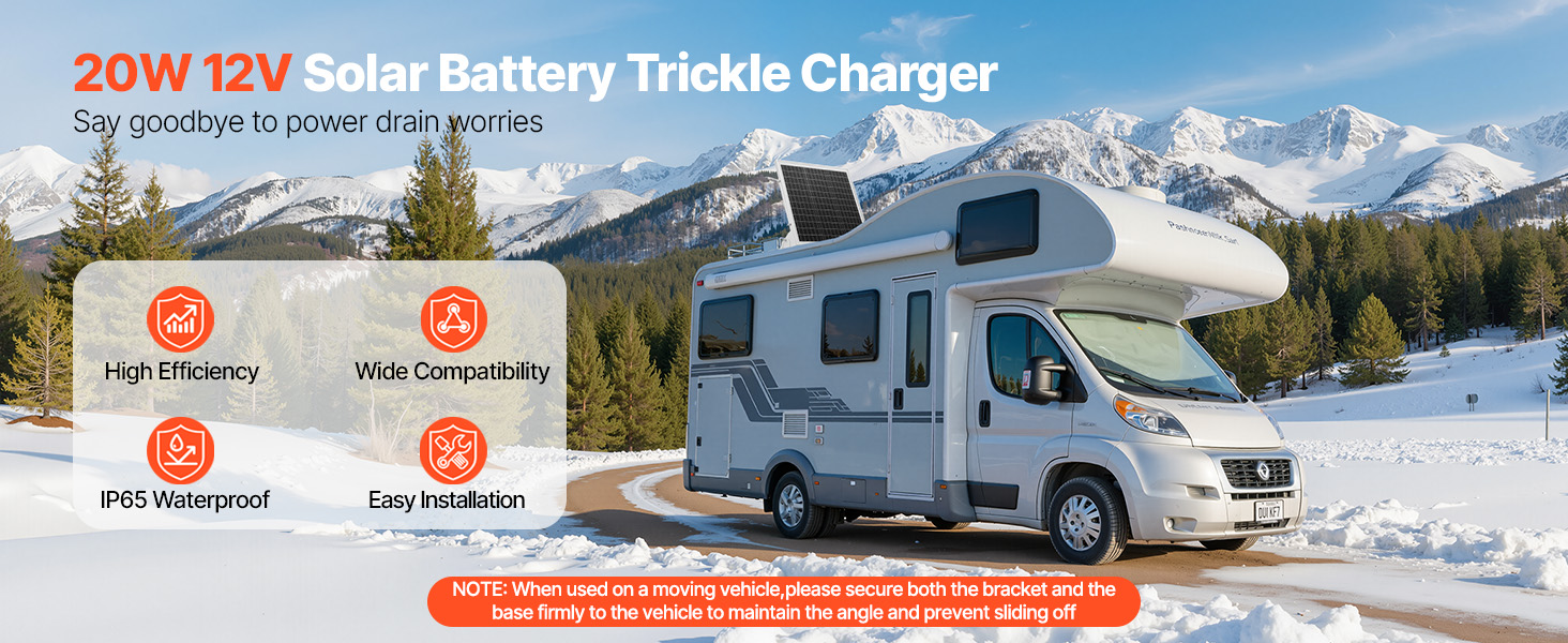 Rozlúčte sa s vybitými batériami! Naša 20W 12V solárna nabíjačka akumulátorov využíva slnečnú energiu na spoľahlivé napájanie vašich 12V akumulátorov. Je skonštruovaná s vysokoúčinnými monokryštalickými solárnymi článkami a zabezpečuje spoľahlivé nabíjanie a údržbu pre automobily, obytné vozidlá, lode a ďalšie