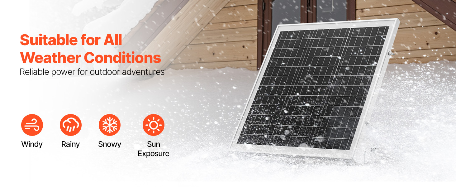 Táto solárna nabíjačka batérií s krytím IP65 je skonštruovaná tak, aby zvládla vietor, dážď, sneh a slnečné žiarenie a spoľahlivo fungovala vo vonkajšom prostredí. Poskytuje stabilné a konzistentné nabíjanie po celý rok, čím udržiava vaše batérie napájané bez ohľadu na počasie.
