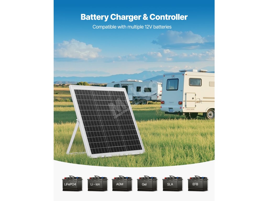 Nabíjačka batérií so solárnym panelom je vybavená inteligentným regulátorom MPPT, ktorý poskytuje viacero vrstiev ochrany. Automaticky zastaví nabíjanie, keď batéria dosiahne 12 V, a po poklese napätia pokračuje v nabíjaní a údržbe