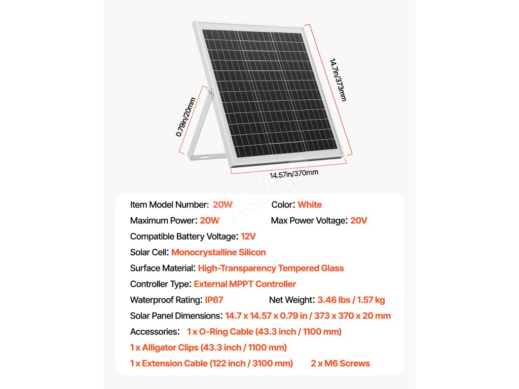 Solárny panel 20W 12V s mppt nabíjačkou a nastaviteľným držiakom ip67