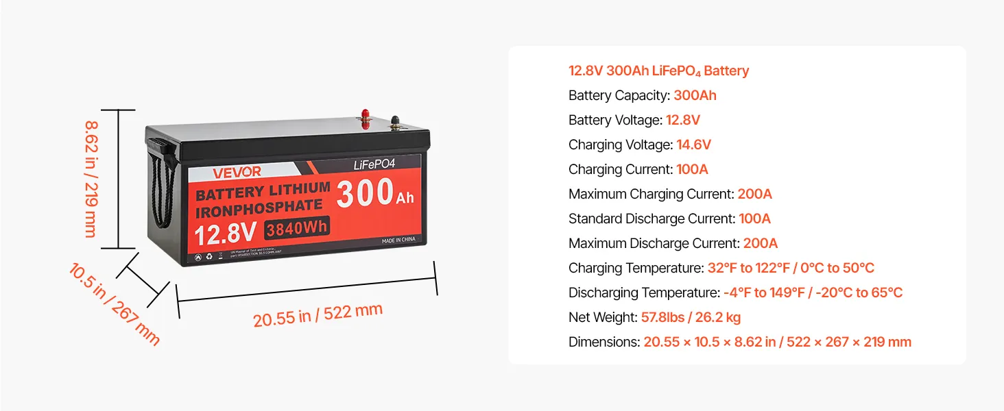 | LiFePO₄ batéria | 12.8V 300Ah |