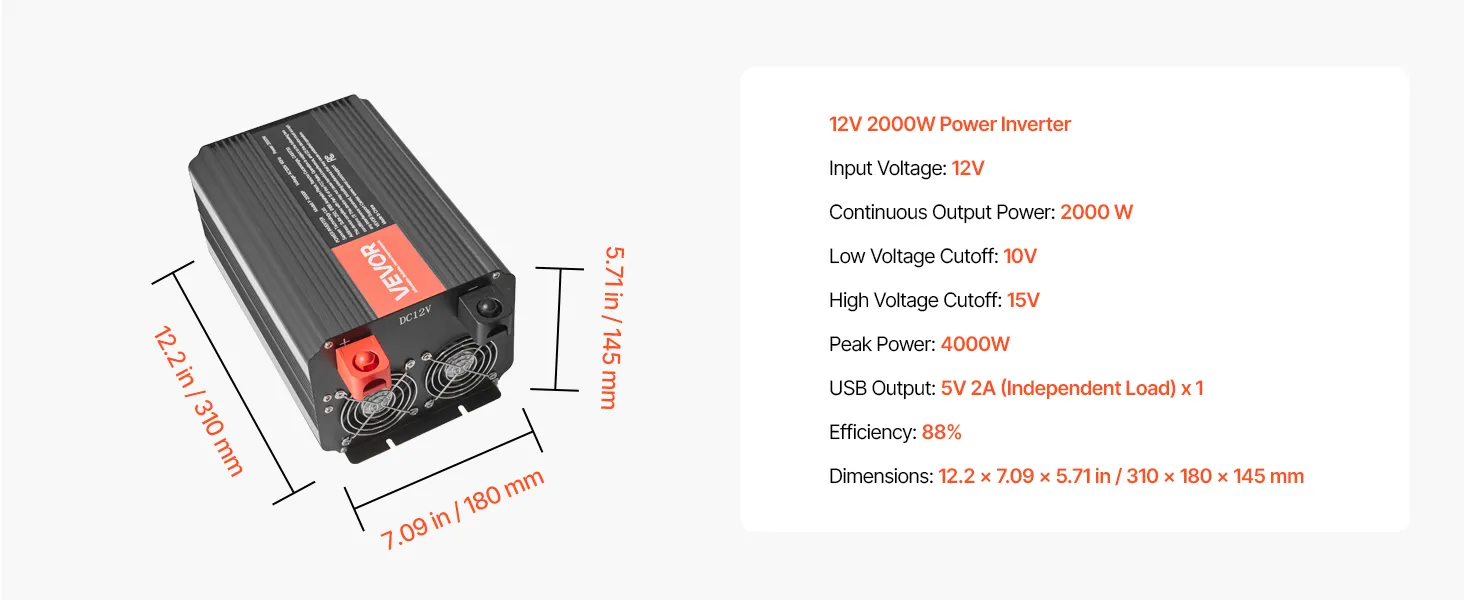| Napájací menič | 12V 2000W |