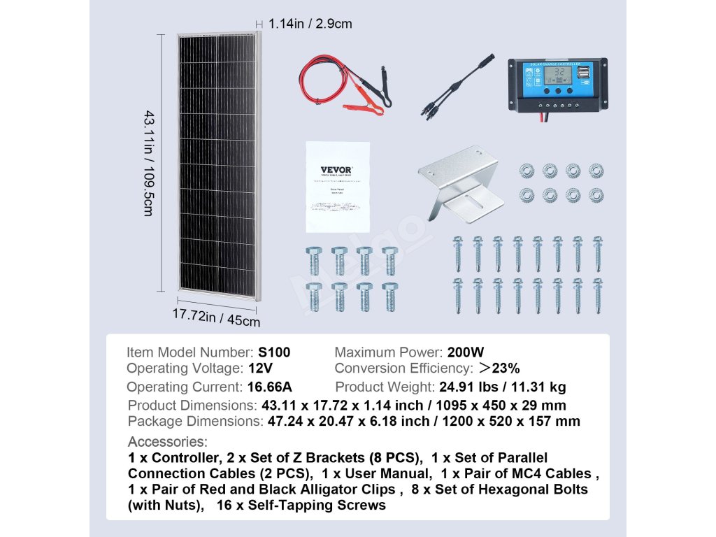 Solárna súprava 200W, 2× monokryštalické panely, 23% účinnosť, IP68