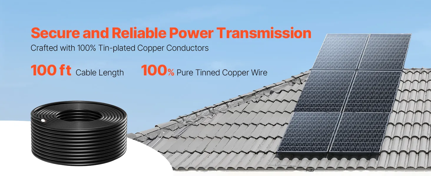 Solárny predlžovací kábel 30.48m/100FT 6mm²/10AWG IP67 pre panely